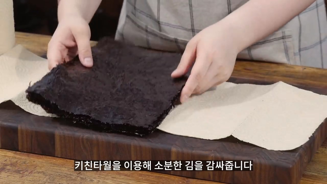 키친타올을 이용해 소분한 김을 감싸줍니다.
