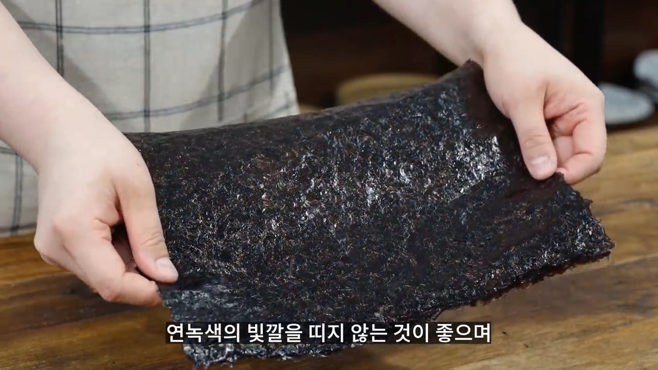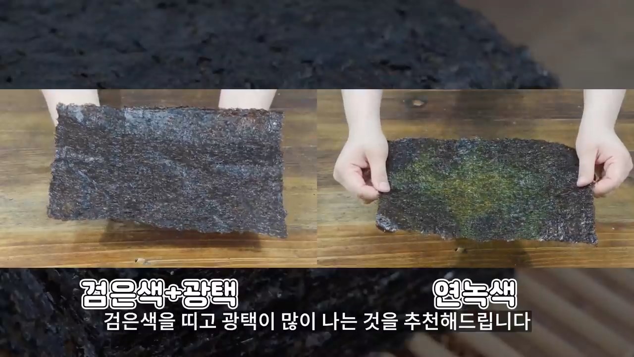 파래가 함유되어 있을 수 있으니 연녹색의 빛깔을 띠지 않는 것이 좋으며 검은색을 띠고 광택이 많이 나는 것을 추천해드립니다.