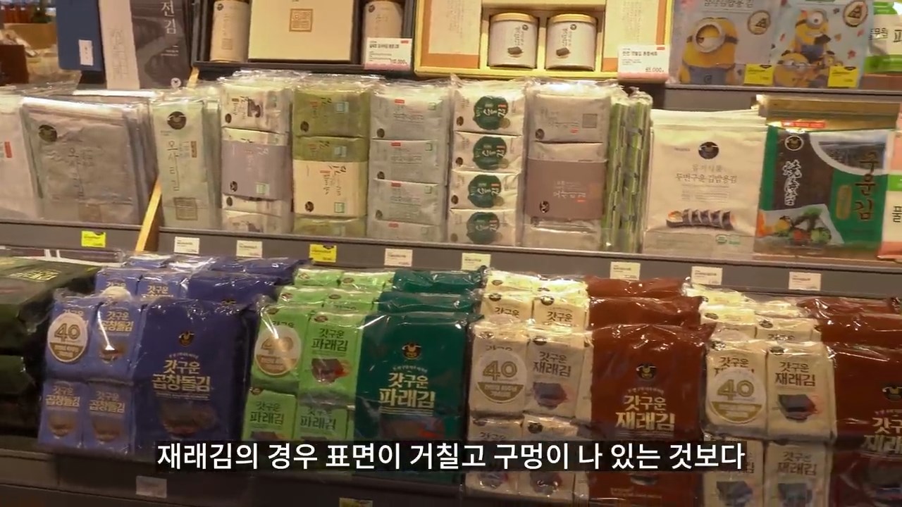예전에는 일반 김보다 상품성이 떨어진다는 이유로 외면을 받았지만 최근에는 파래의 영양적 효능때문에 인기가 많아졌다고 해요.