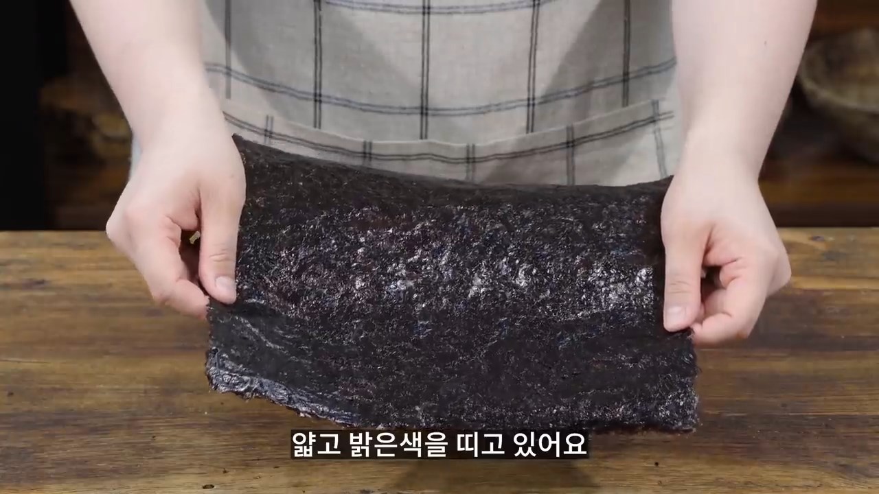 조선김이라고도 불리며 얇고 밝은 색을 띠고 있어요.
