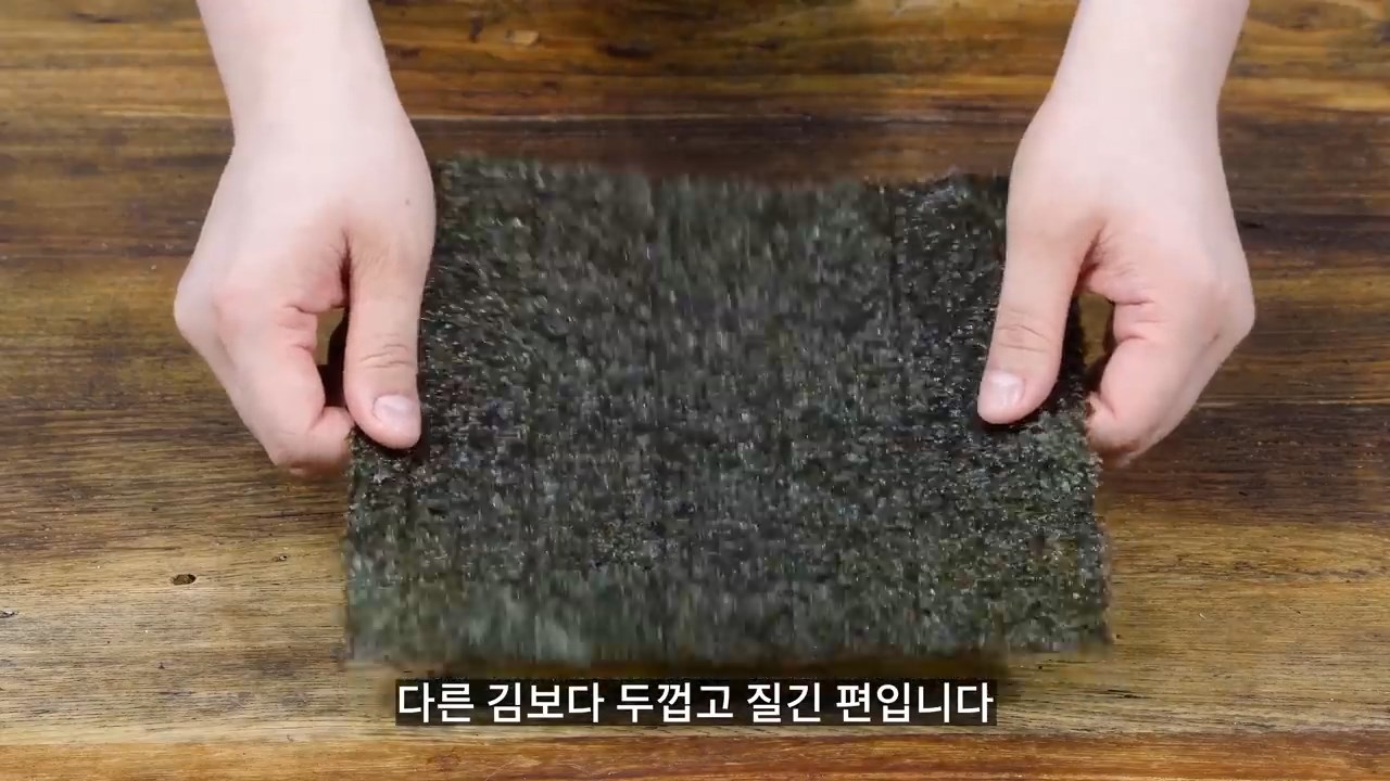 김밥을 만들었을 때 쉽게 터지지 않도록 여러겹 겹쳐서 만들어내기 때문에 다른 김보다 두껍고 질긴 편입니다.