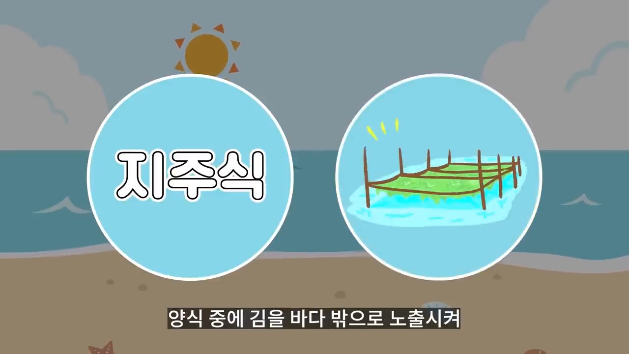 지주식 방식은 밀물과 썰물을 이용해 양식 중의 김을 바다 밖으로 노출 시켜 햇빛을 쬐는