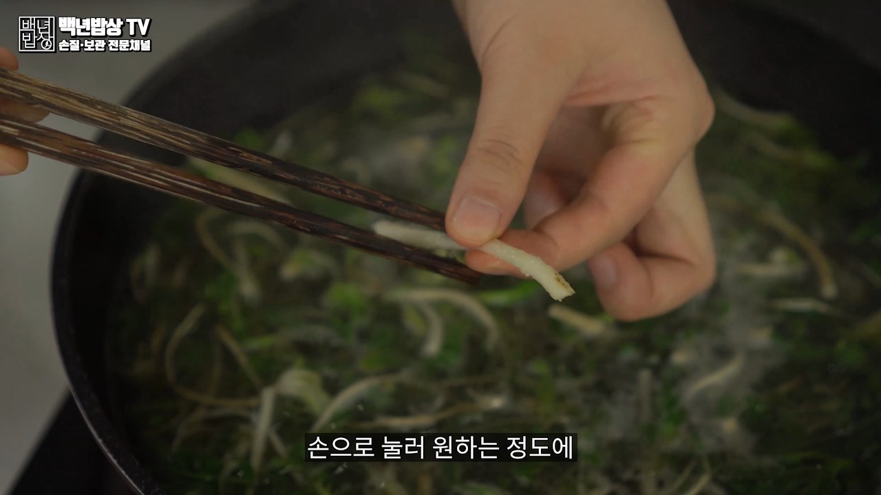 원시적이지만 냉이를 데치다가 중간에 냉이 한 뿌리를 건져 손으로 눌러 원하는 정도의 무르기로 확인해 주시는게 좋습니다.