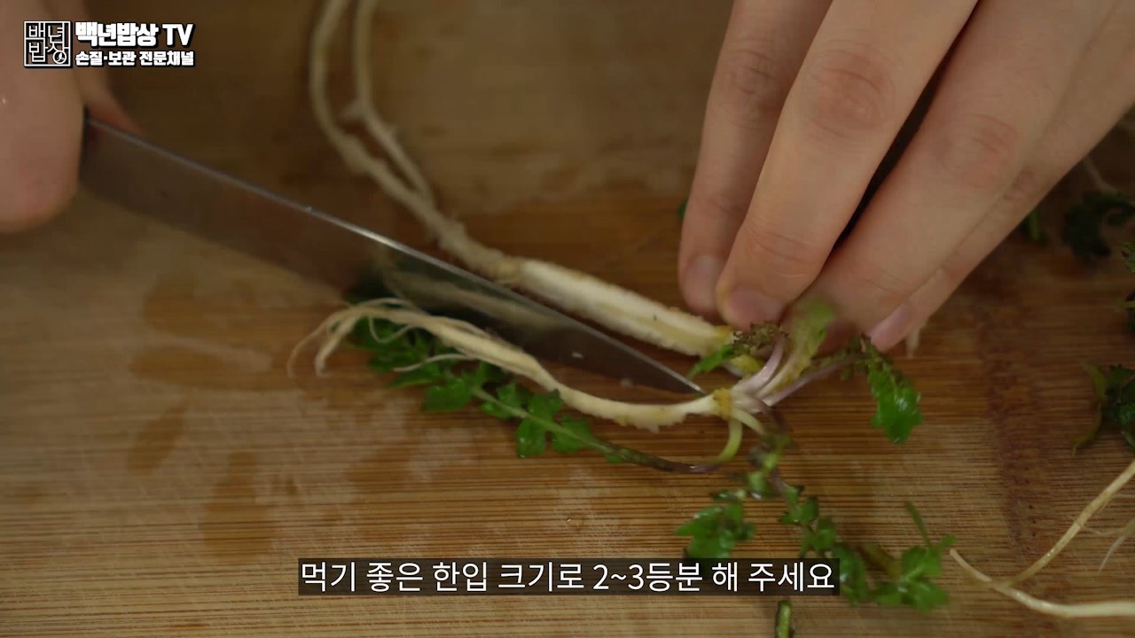 냉이는 크기에 따라 뿌리를 반으로 자르고, 먹기좋은 한 입 크기로 2~3등분 해주시면 냉이손질 끝!