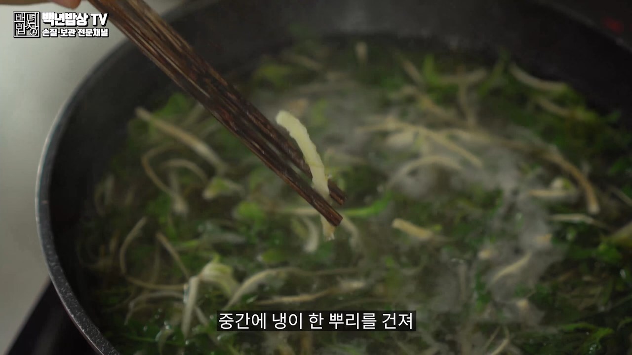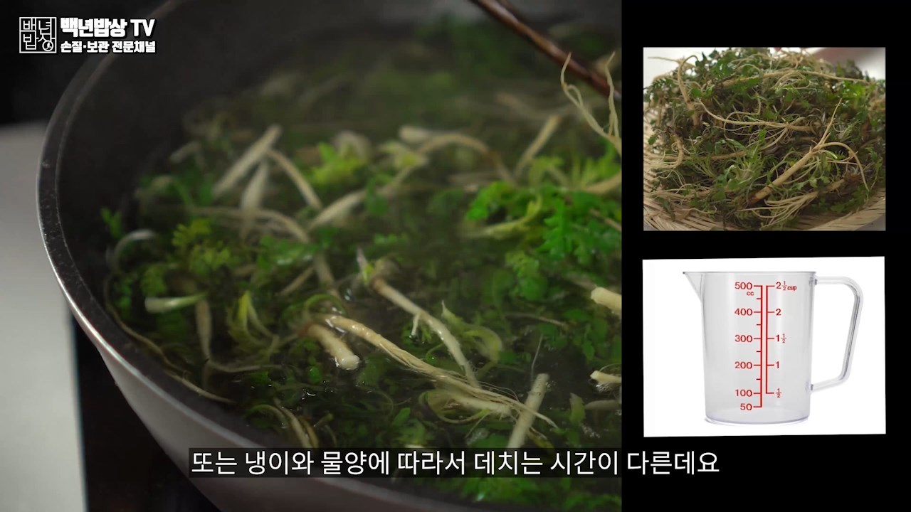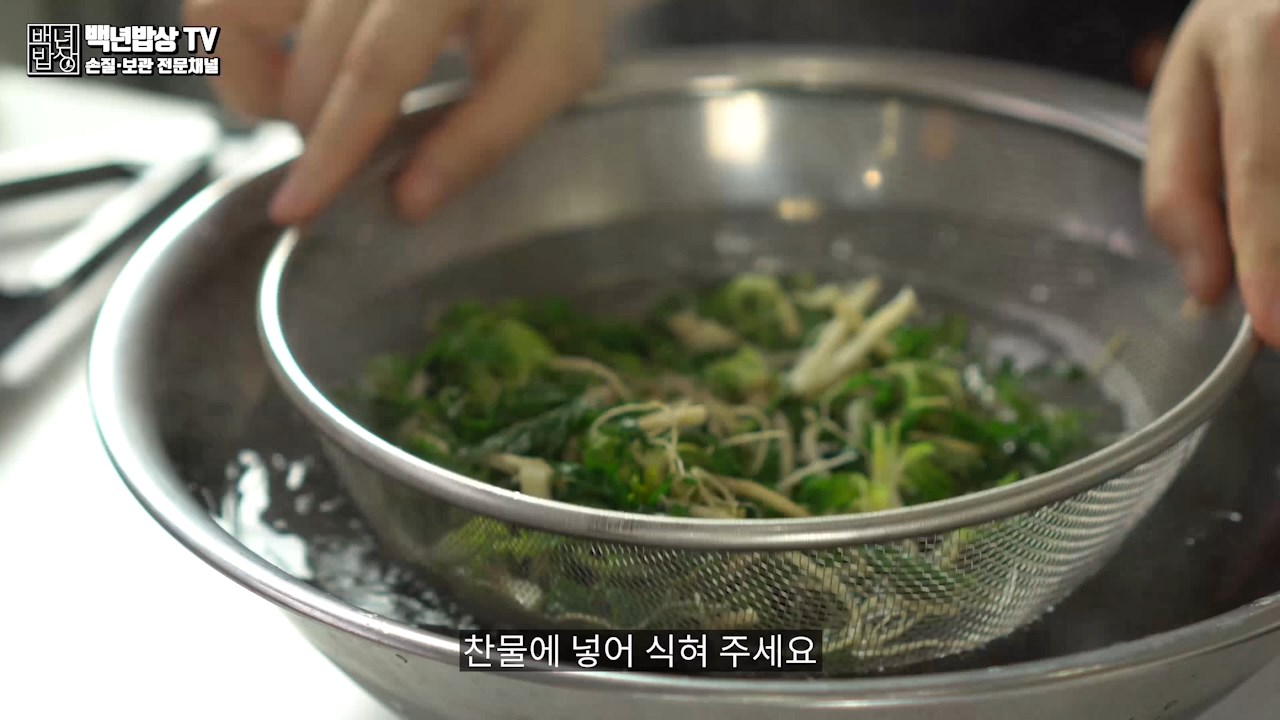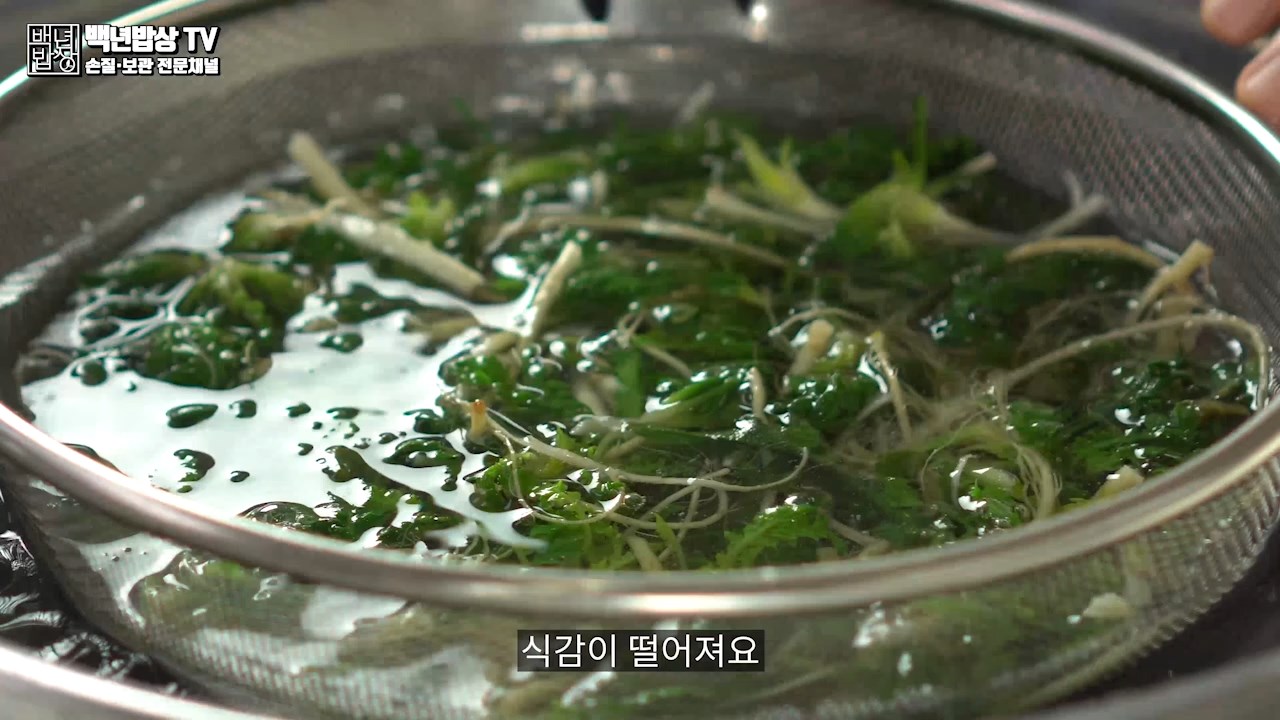나물은 데치고 나서 뜨거운 상태가 유지되면 식감도 떨어져요.