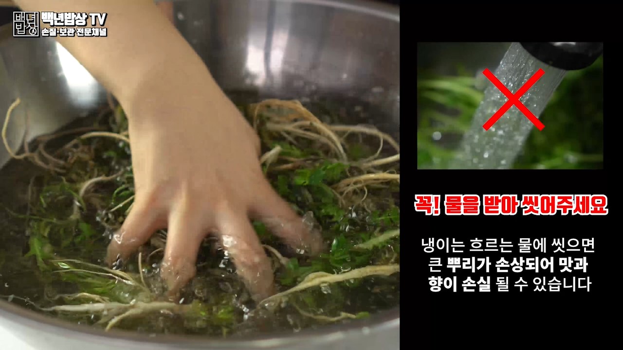 (Tip. 냉이는 흐르는 물에 씻게되면 큰 뿌리가 손상되어 맛과 향 손실이 있을 수 있습니다)