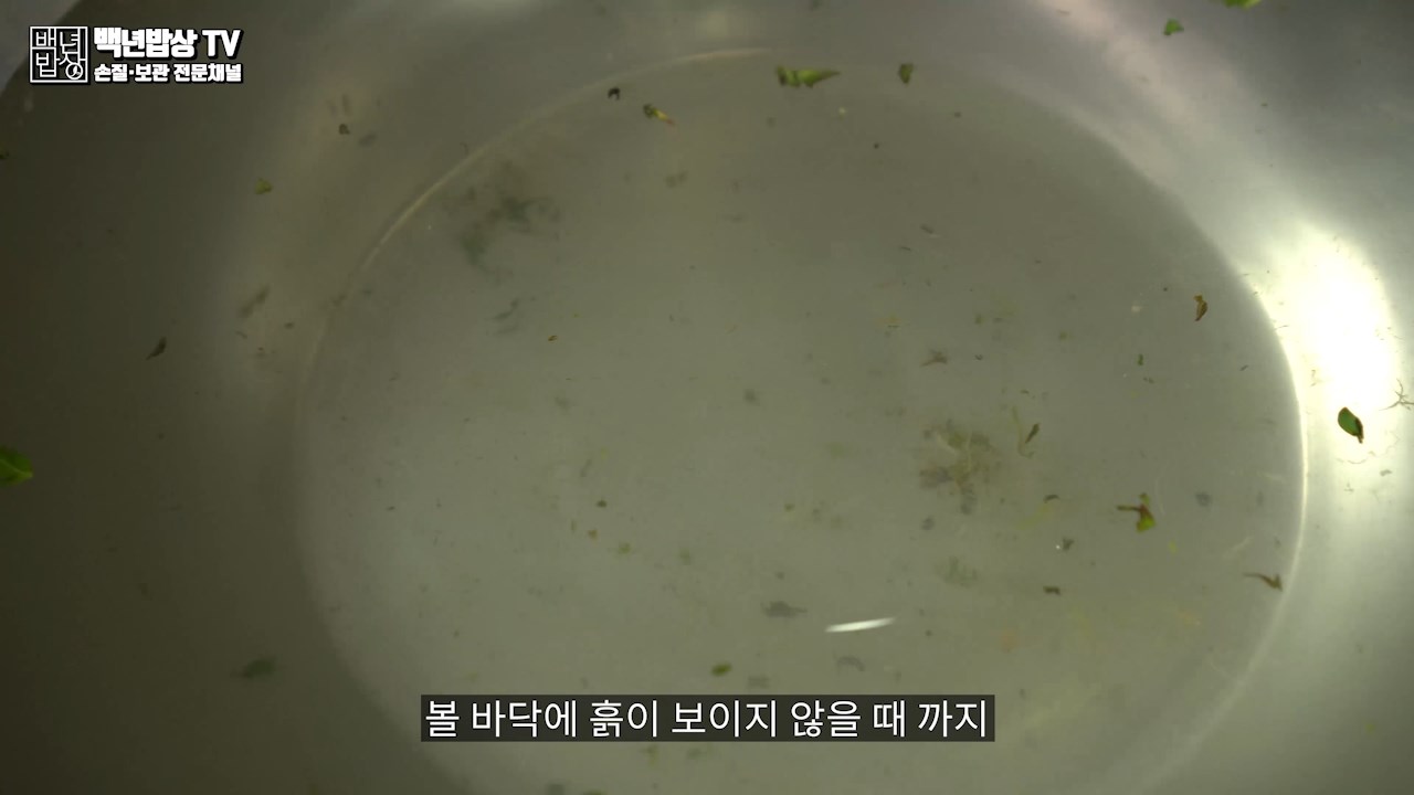 볼 바닥에 흙이 보이지 않을 때 까지 물을 교체하면서 깨끗이 세척해주세요.