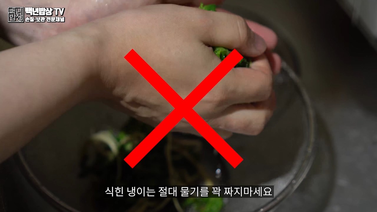 식힌 냉이는 절대 물기를 꽉 짜지 마세요! 냉이는 수분을 어느 정도 머금고 있어야, 나중에 요리하실 때 질겨지지 않아요.