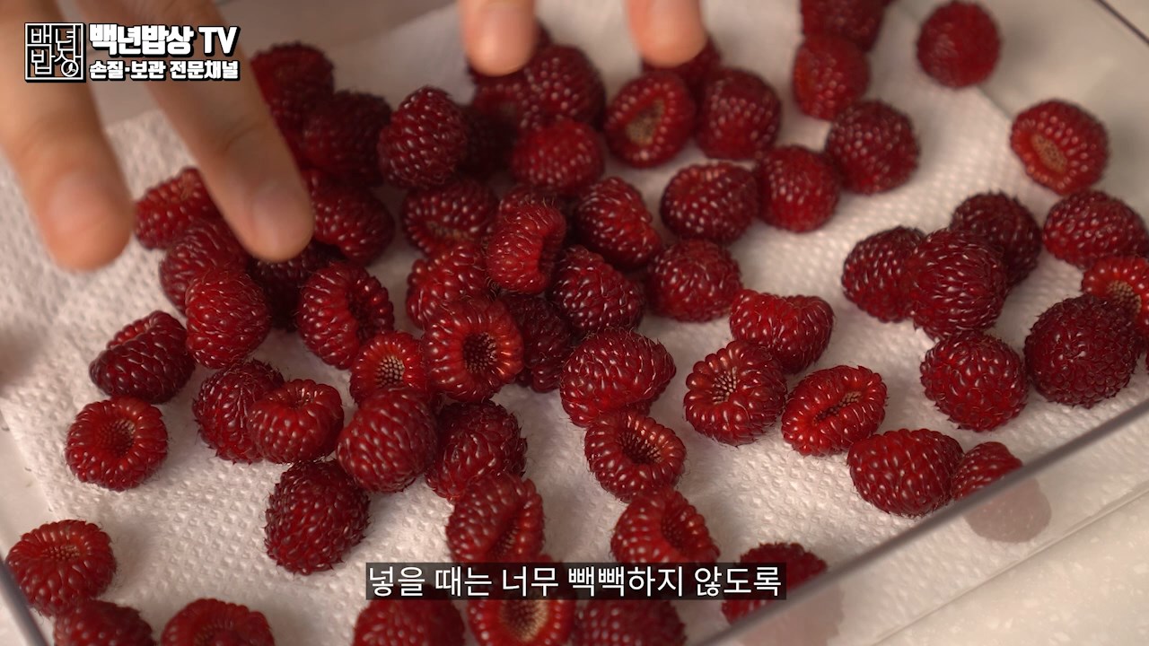 냉동보관 할때는 세척하고 물기를 제대로 말린 후 키친타월을 깔지 않은채 용기에 넣고 6개월 이상 보관 가능 합니다. (물기를 제대로 말리지 않은채 얼리면 알알이 다 붙어서 산딸기 죽이 되버릴 수 있어요.)