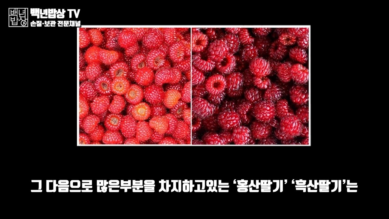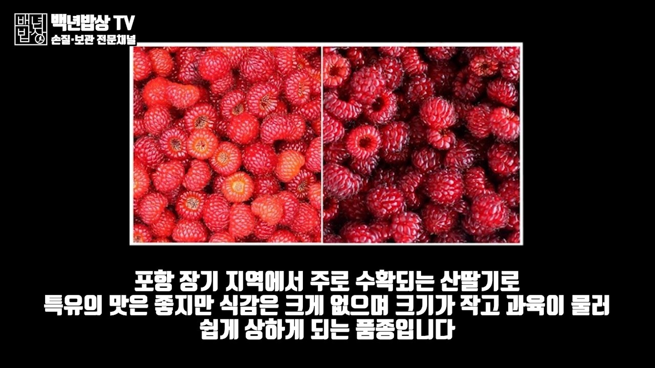 그 다음으로 많은 부분을 차지하고 있는 '홍산딸기'와 '흑산딸기'는 포항 장기지역에서 주로 수확되는 산딸기로 특유의 맛은 좋지만 식감은 크게 없는 편이며 크기가 작고 과육이 무른편이라 보관이 용이하지 않아 쉽게 상하게 되는 품종입니다.