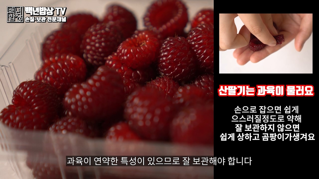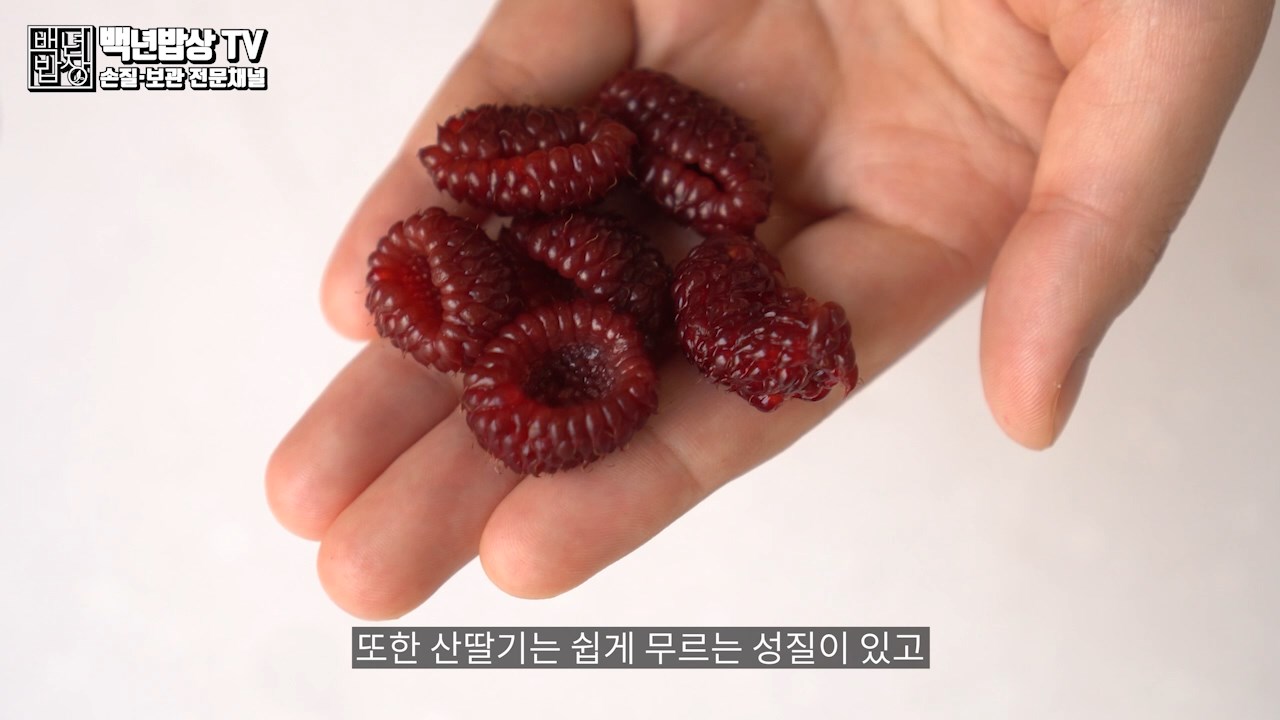 산딸기는 수분을 잔뜩 머금고 있어 과육이 연약한 특성이 있으므로 잘 보관 해야 합니다. (손으로 잡으면 쉽게 으스러질 정도로 약해요)