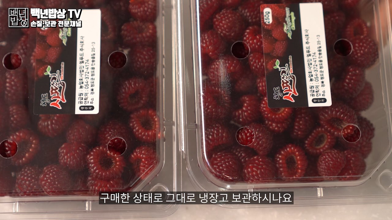 냉장고 안에 냉기가 약한쪽에 넣고 4-5일간 보관 가능합니다. (하지만 냉장보관이 산딸기의 상태를 오래 유지시켜 주진 않으니 가급적 빨리 소비하는 것이 가장 좋은 방법 이에요. 산딸기 자체가 오랫동안 싱싱한 상태로 유지하기 어려우며 보관기간이 짧은 과일이에요.)