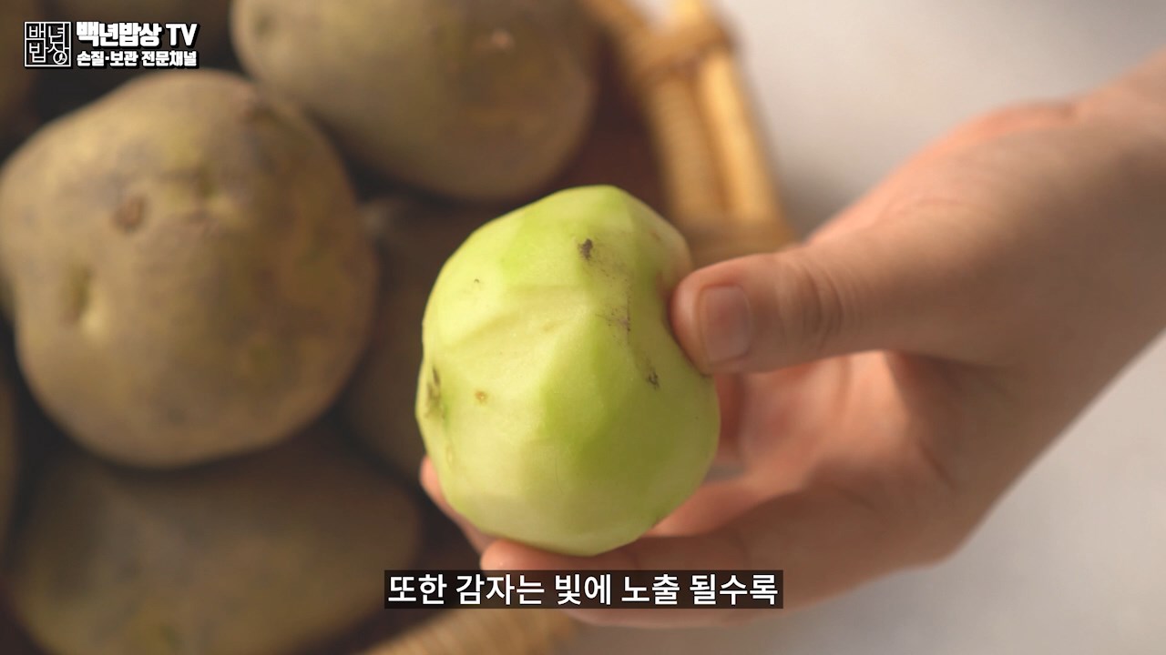 감자는 습하면 썩거나 약간의 빛에도 광합성을 해서 녹색으로 변하게 되고 솔라닌이라는 독성 성분이 생길 위험이 있으므로 잘 보관해야 합니다.