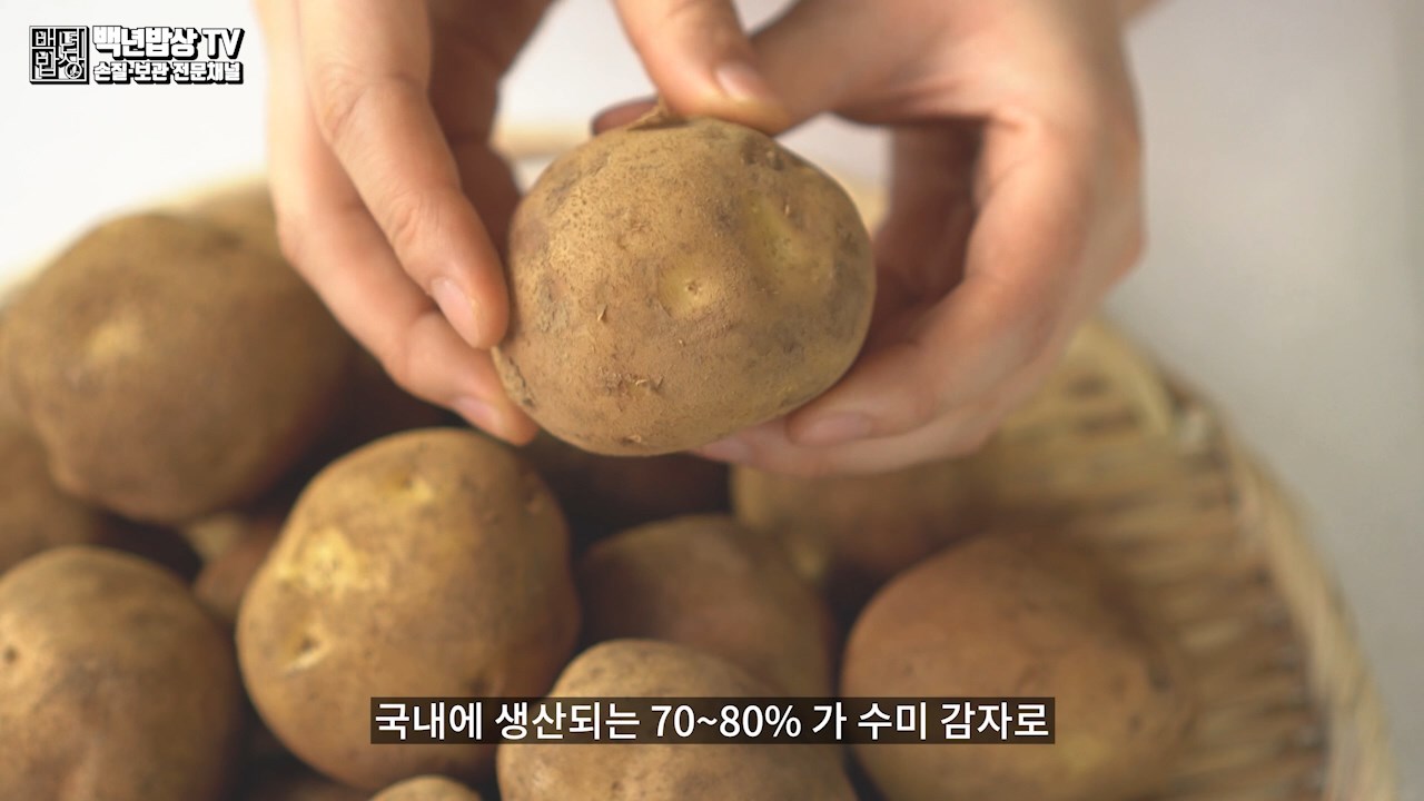 감자도 여러 품종이 있으나 국내에 생산되는 70~80%가 수미감자로 주로 우리가 먹는 감자 품종입니다. 수미감자는 병충해에 강해 상업적으로 경작하기 좋은 품종으로 생산량이 많아요.