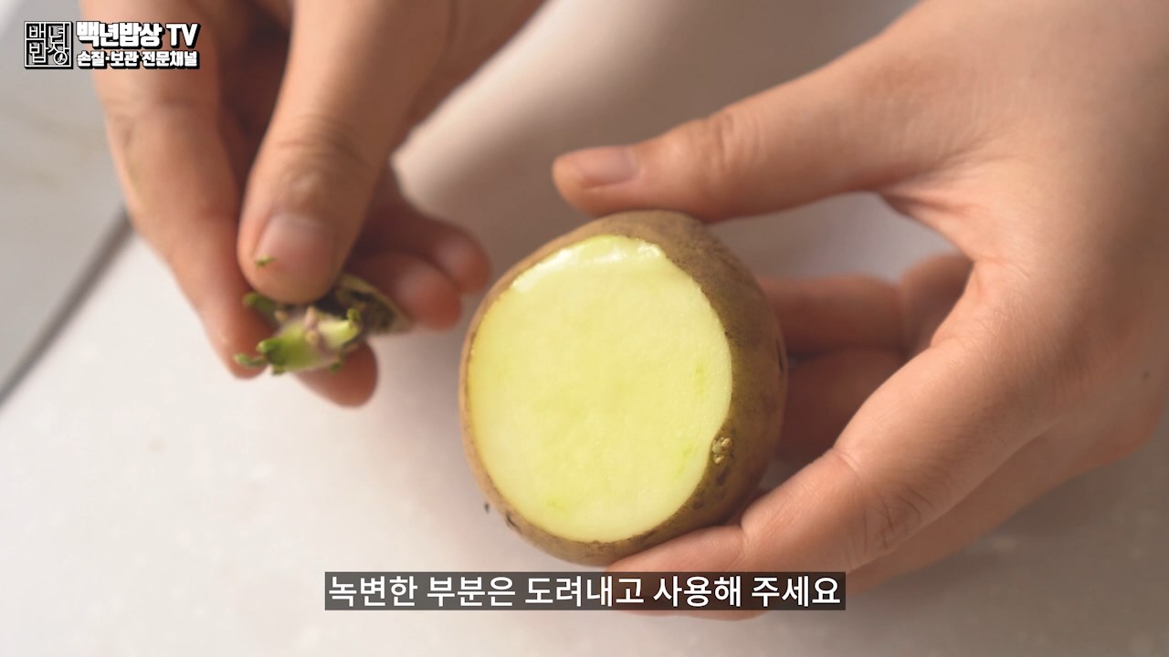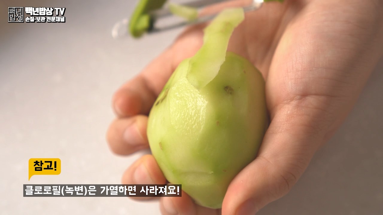 클로로필(녹변)은 가열하면 사라져요! 단, 솔라닌은 분해 되거나 파괴되지 않으므로 꼭! 도려내고 사용해주세요.