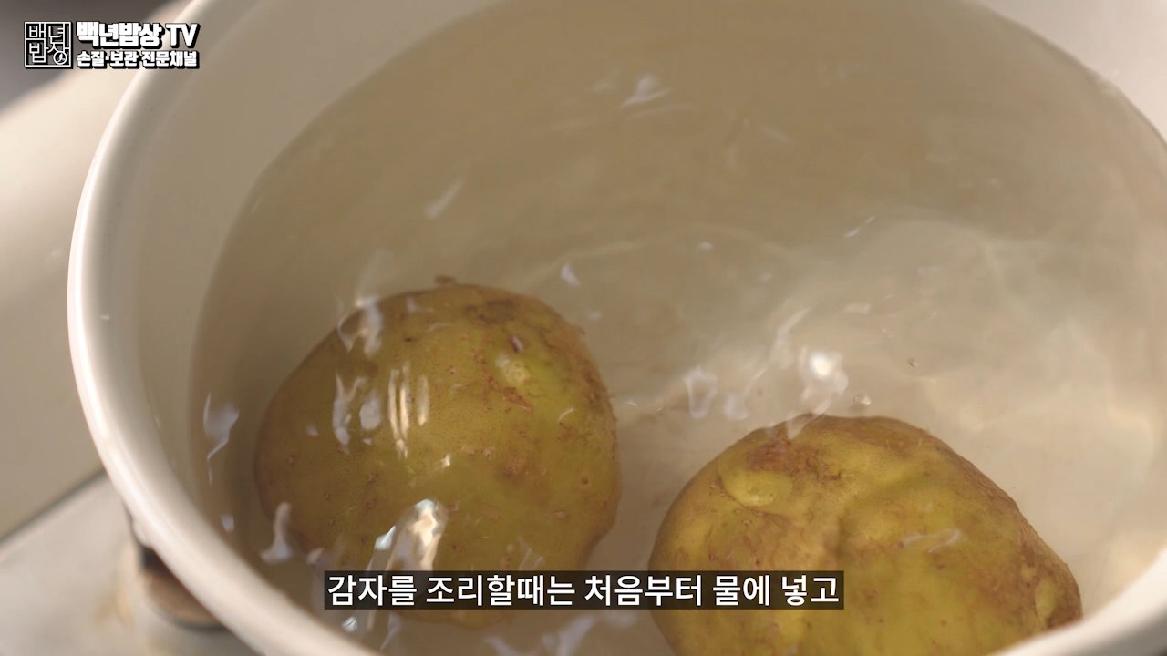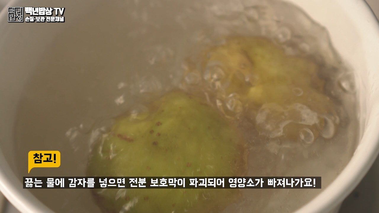끓는 물에 감자를 넣으면 전분 보호막이 파괴되어 영양소가 빠져나가요! 물이 끓기 전 감자와 물을 함께 넣어주세요.