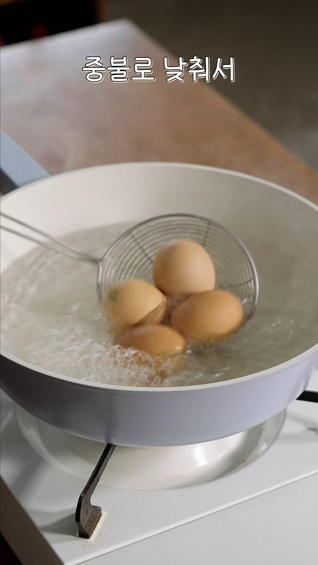 2. 간장이 식을동안 계란을 끓는물에서 6분간 삶아 찬물에 식혀주세요.
