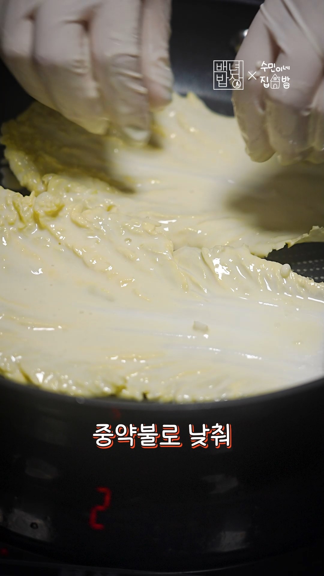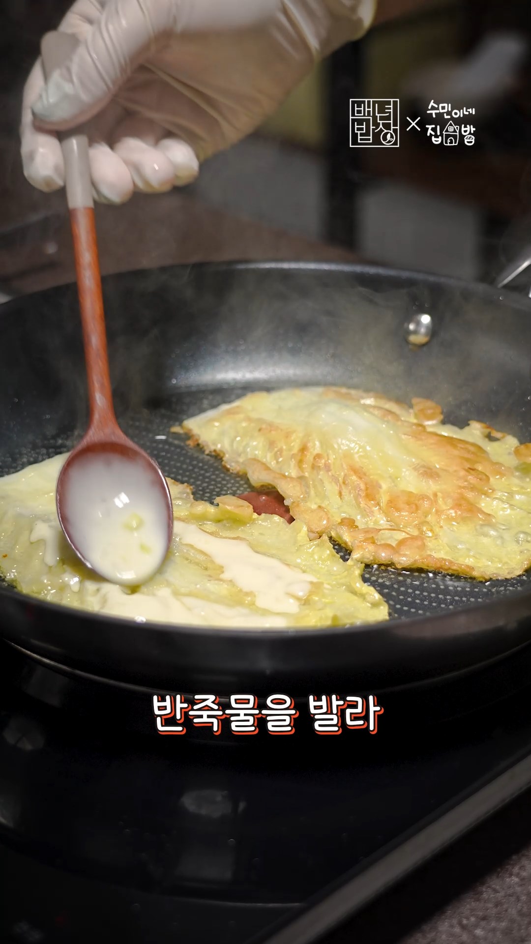 5. 한 면이 바삭하게 익으면 뒤집어주고 숟가락으로 반죽물을 발라 골고루 익혀주세요.