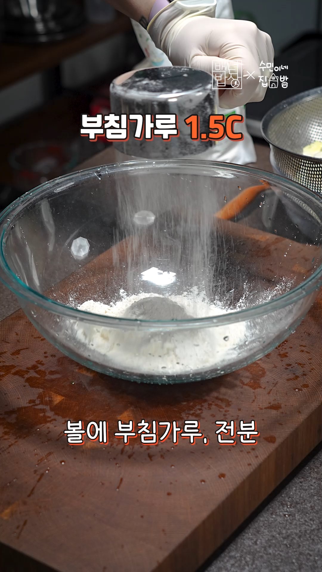 2. 볼에 부침가루, 전분, 물을 넣고 반죽을 만들어주세요.
