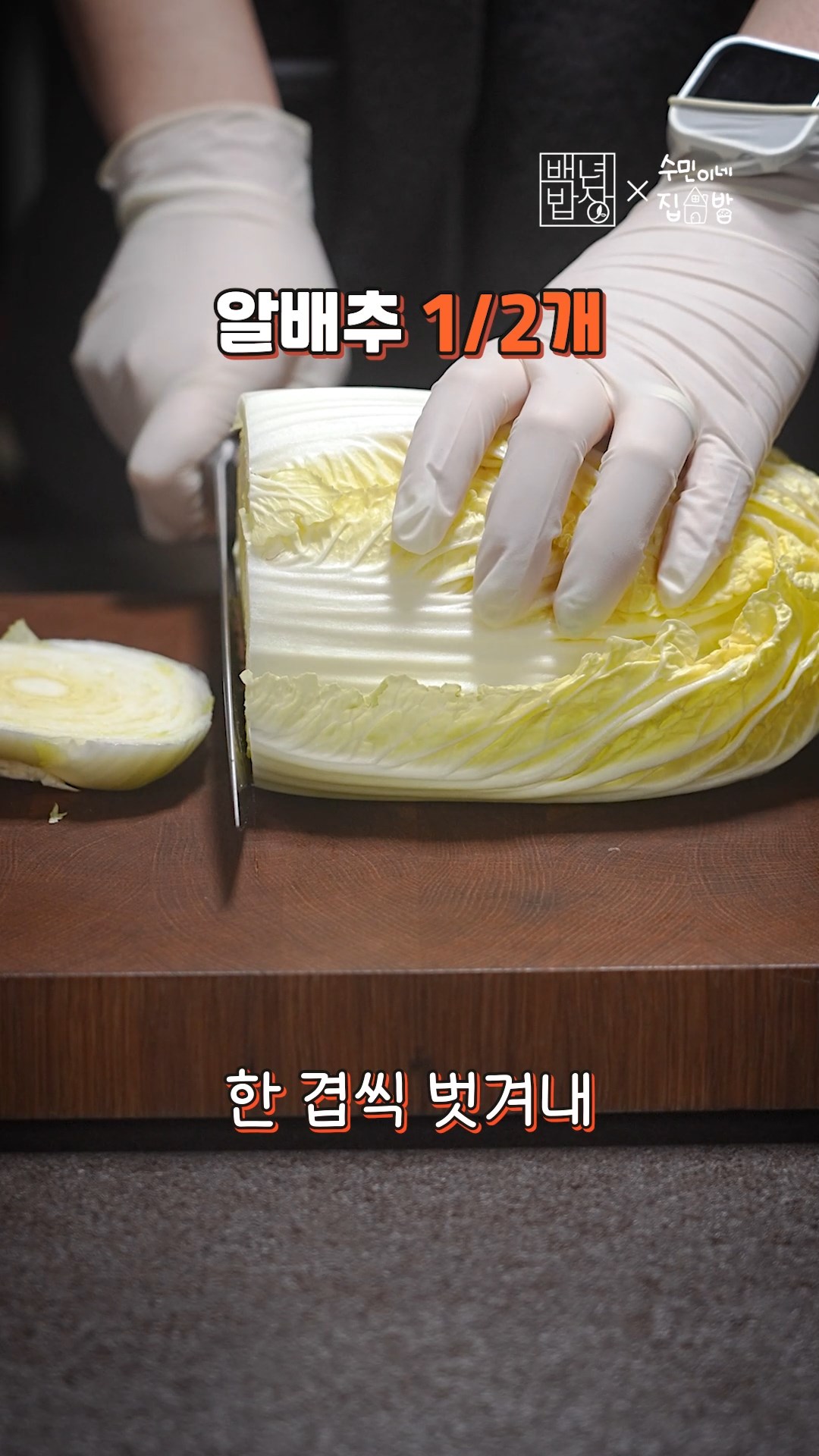 1. 배추는 밑동을 손질하여 물에 세척해주세요. (배추의 줄기 부분은 칼로 가볍게 칼집을 내주세요.)