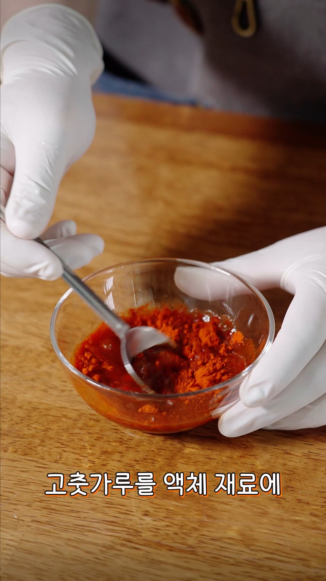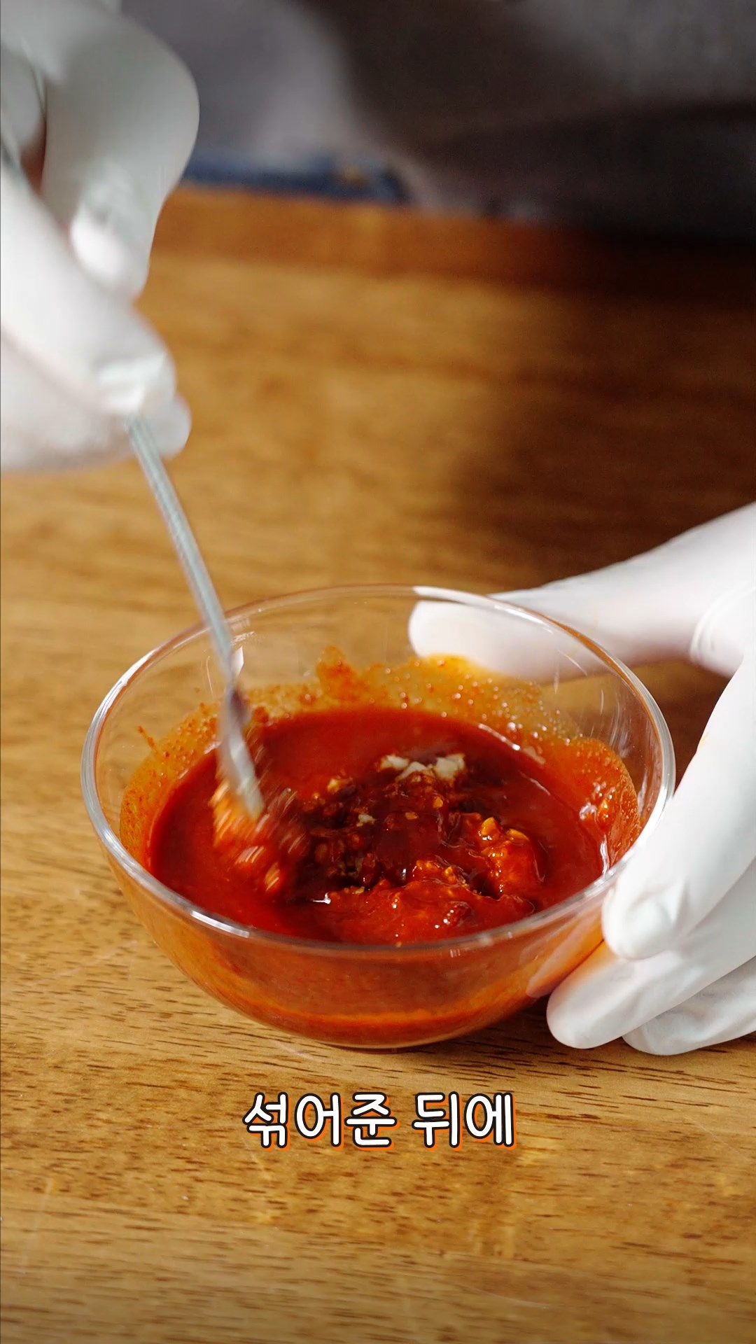 4. 불린 고춧가루에 고추장, 다진마늘을 넣고 한 번 더 섞어주세요.
