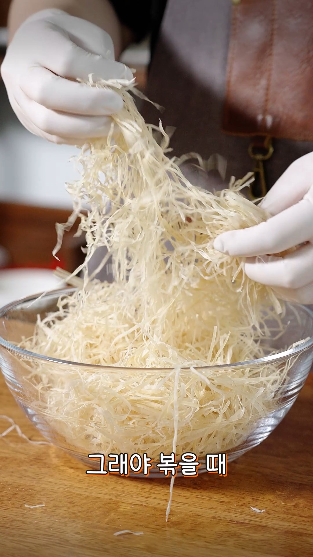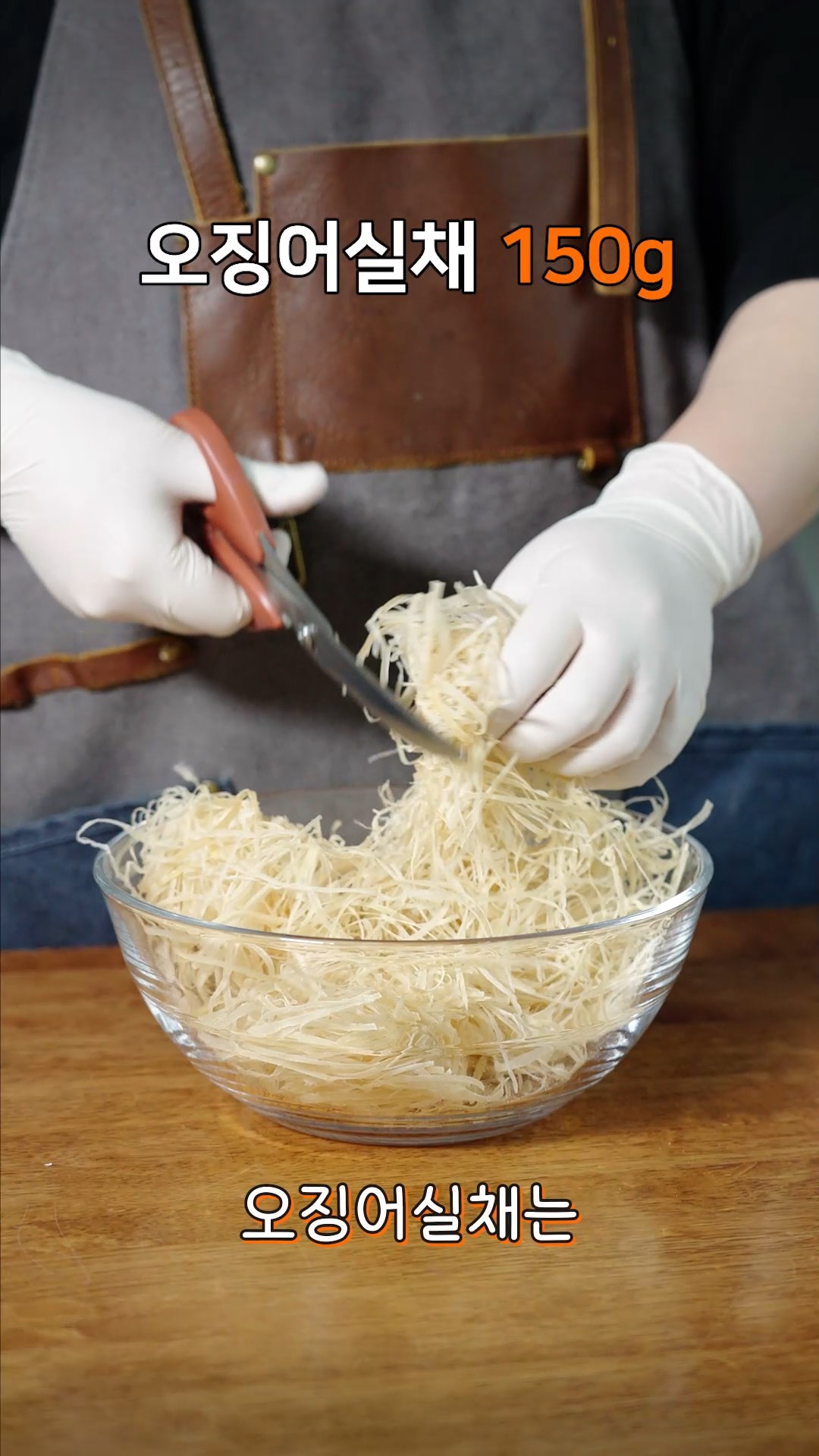 1. 오징어 실채는 먹기 좋게 잘라 손으로 뭉쳐진 부분을 풀어주세요.