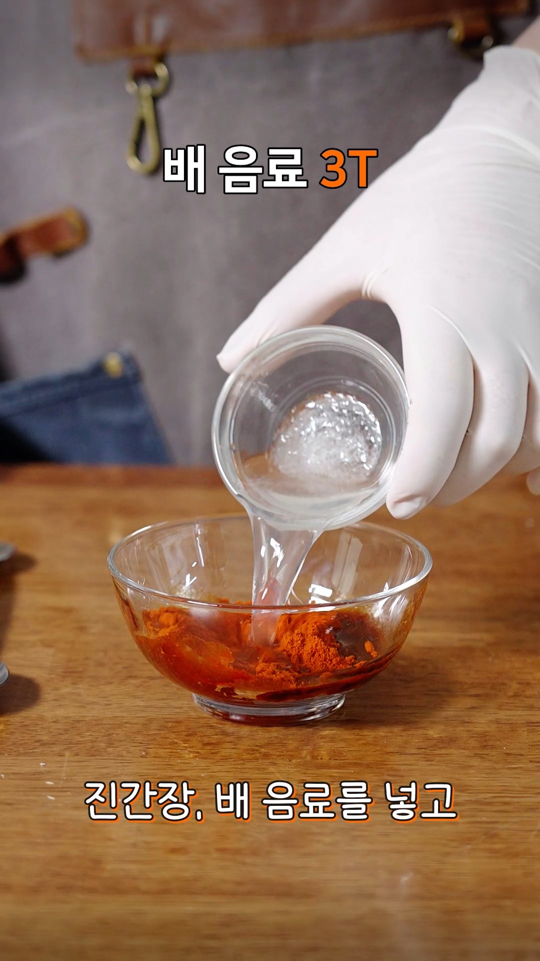 3. 볼에 고춧가루, 진간장, 배음료를 넣어 섞어주세요.