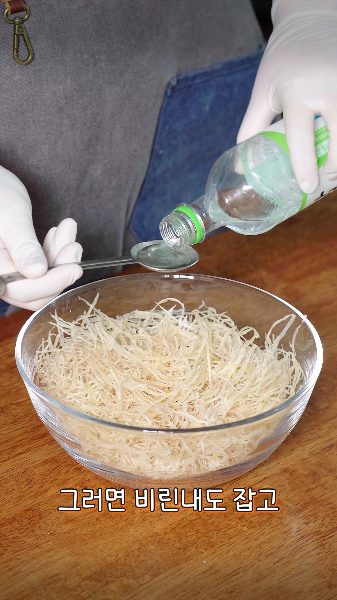 2. 오징어 실채에 소주를 넣어(소독&비린내 제거) 주세요.