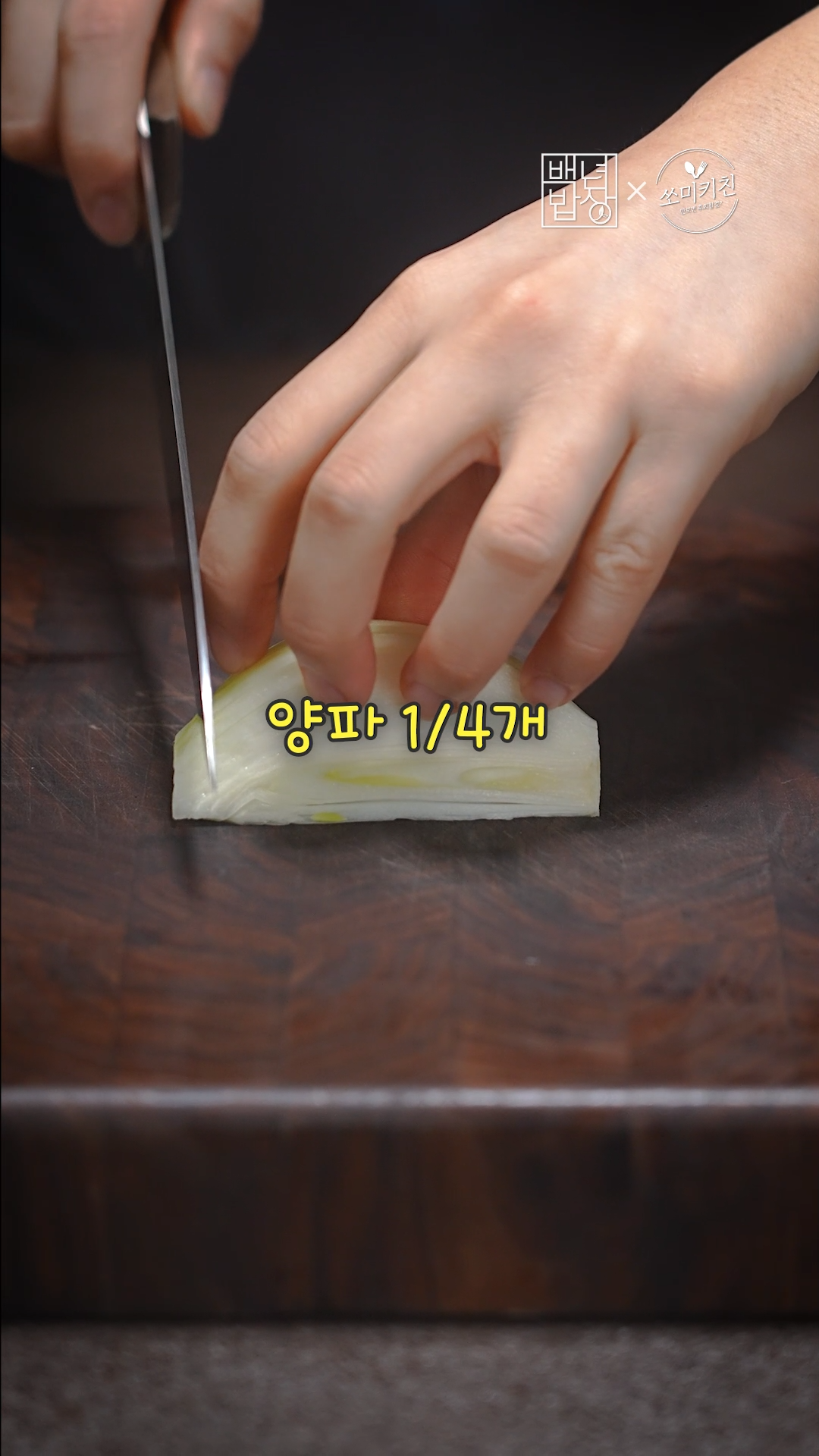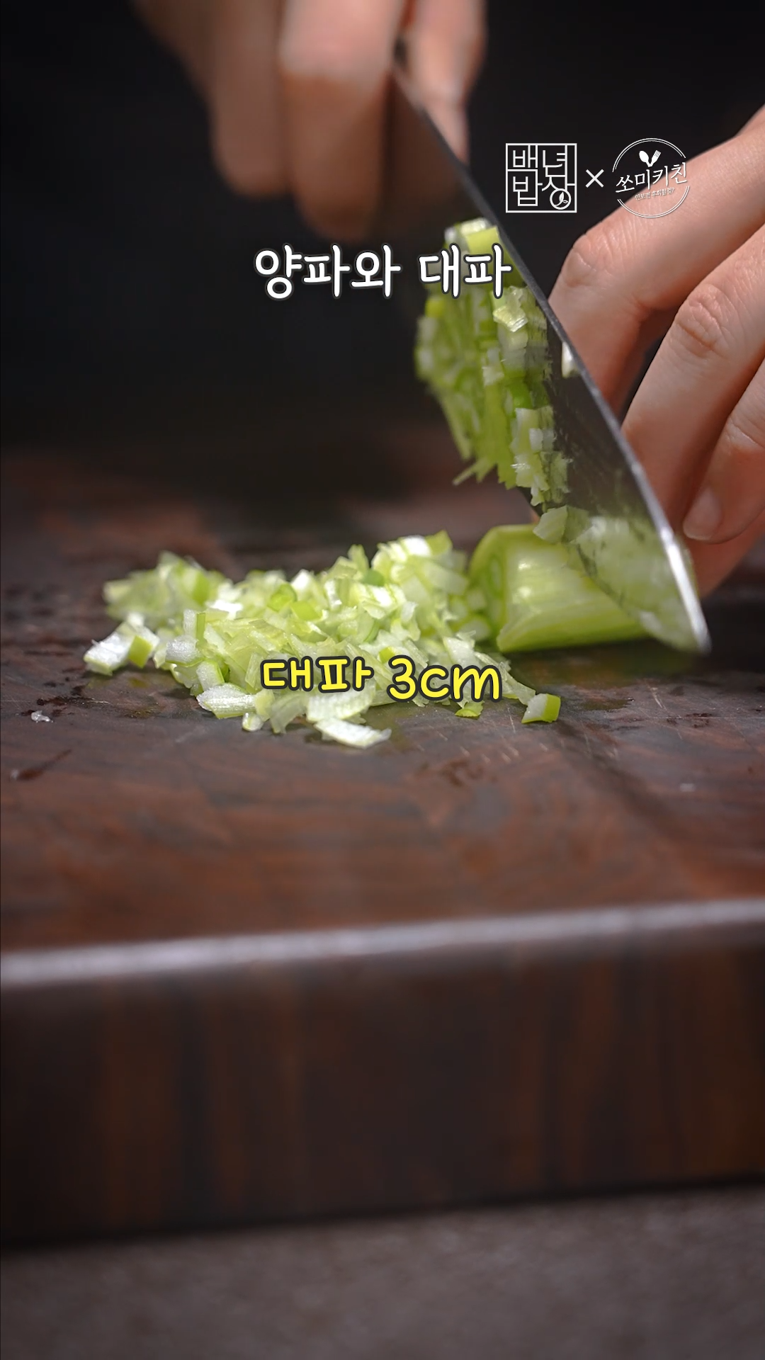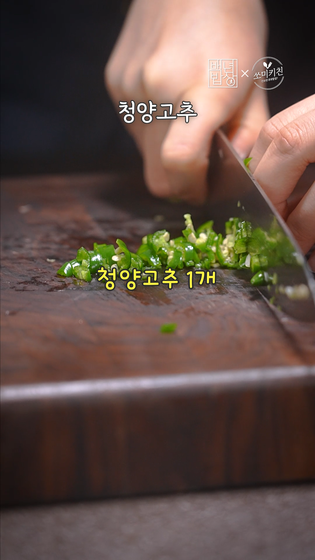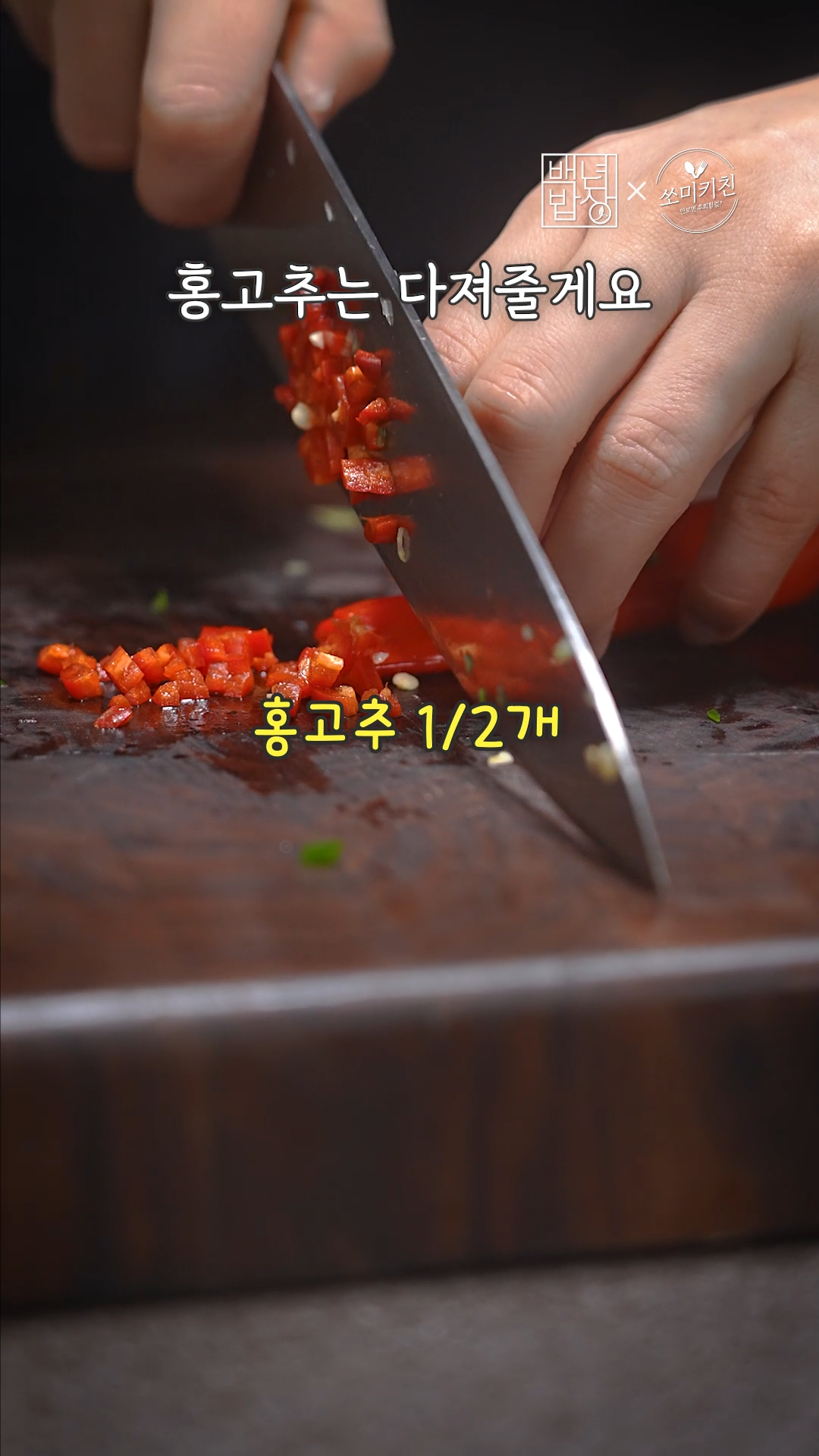 2. 양파(1/4개)와 대파(3cm), 청양고추(1개), 홍고추(1/2개)는 다져줍니다.