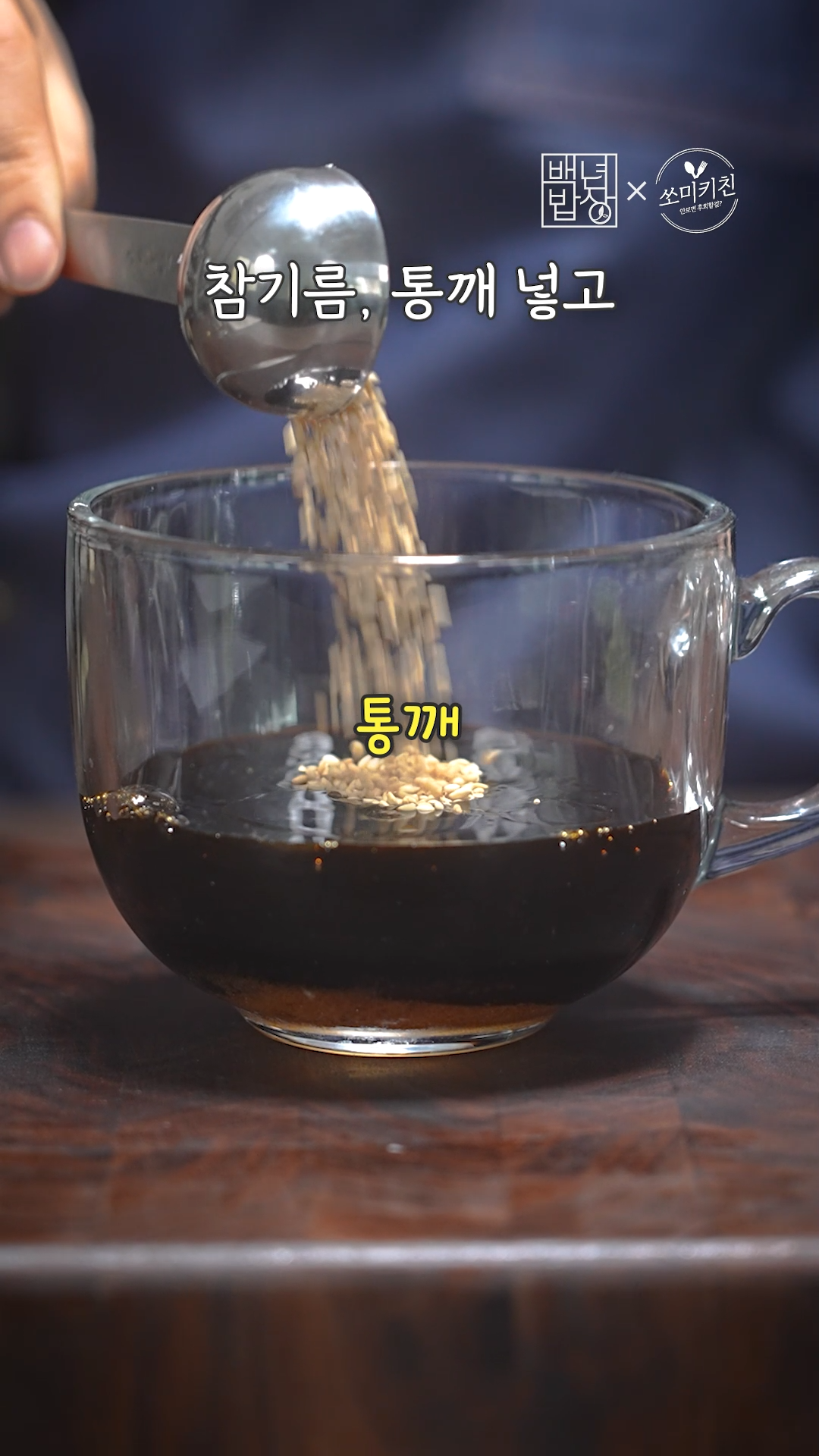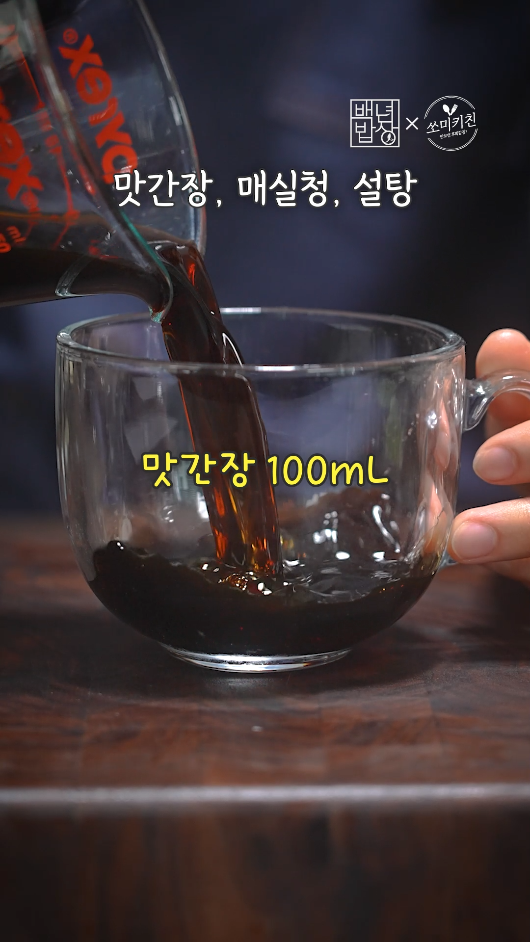 3. 맛간장 100mL, 매실청 1T, 설탕 1/2T, 참기름1/2T, 통깨 넣고 소스 만들어 준 후,