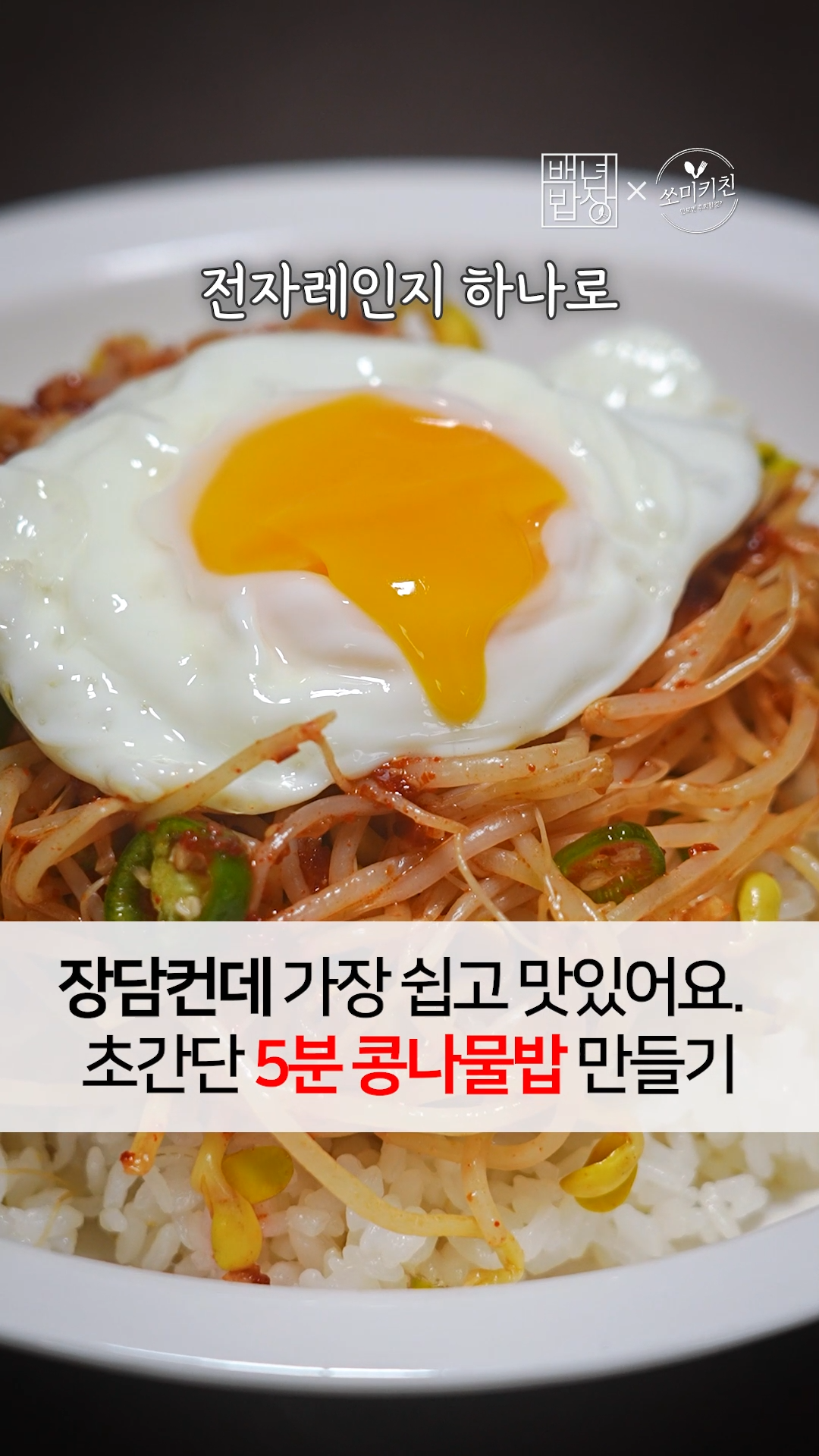 2. 전자레인지 용기에 밥, 콩나물을 올려 뚜껑 덮고 전자레인지에 3분간 돌려주세요.