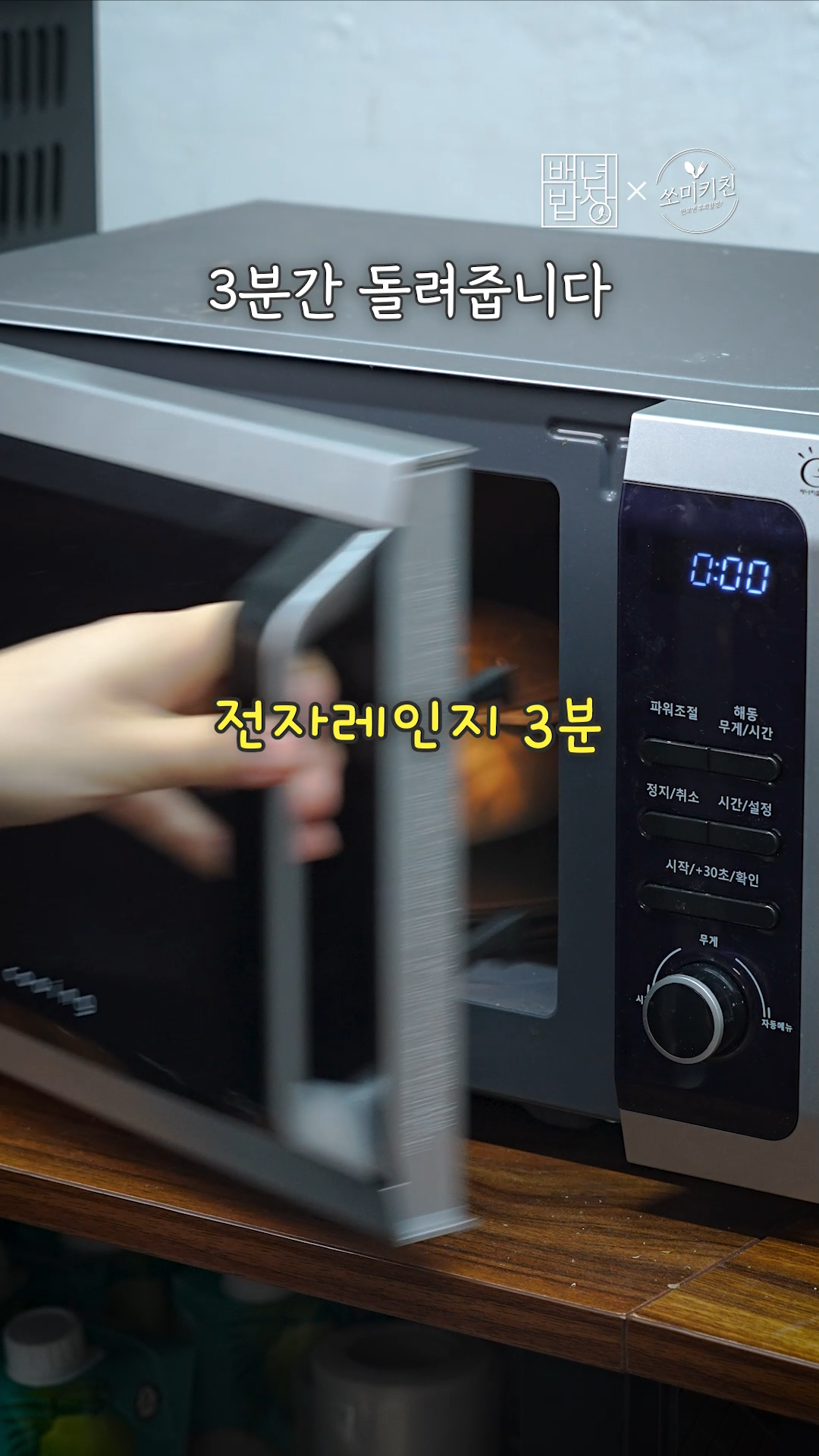 용기가 없다면 그릇에 랩 씌워서 포크로 구멍 콕콕 뚫어주세요.