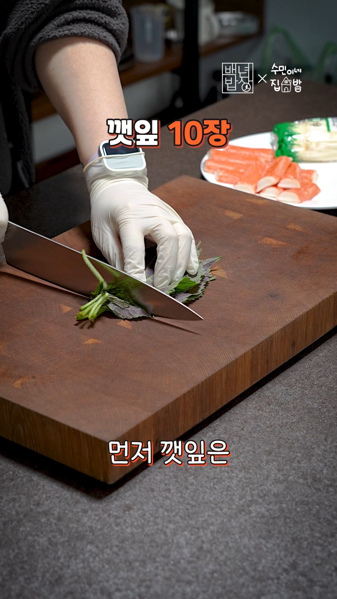 1. 깻잎은 꼭지 제거 후 반으로 잘라주고 크래미도 반으로 갈라주세요.