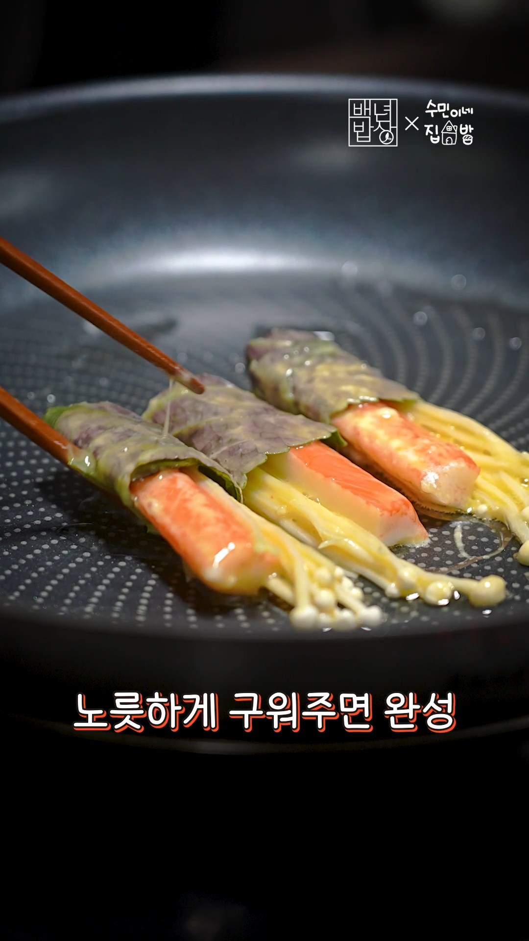 6. 팬에 기름을 두르고 말아둔 재료를 노릇하게 구워주면 완성!