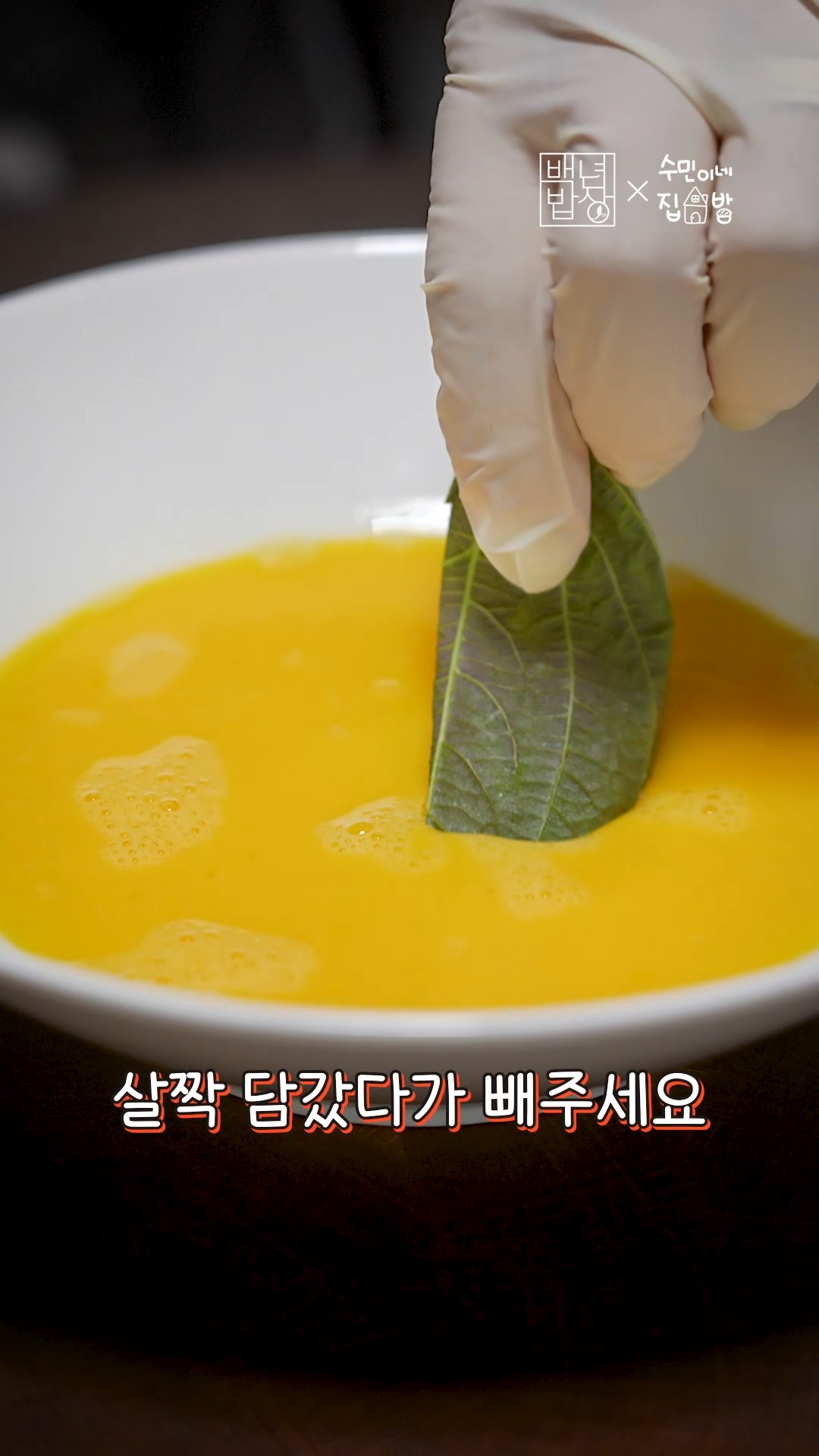 3. 계란은 소금을 넣고 풀고 깻잎 끝을 계란물에 살짝 담갔다가 빼주세요.