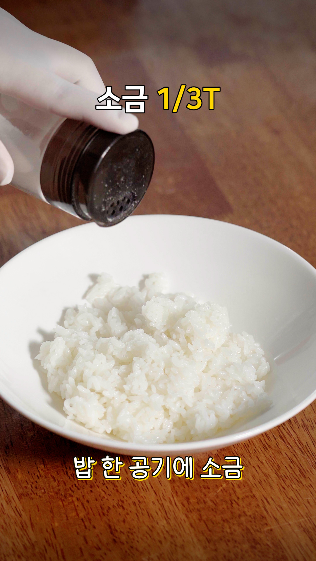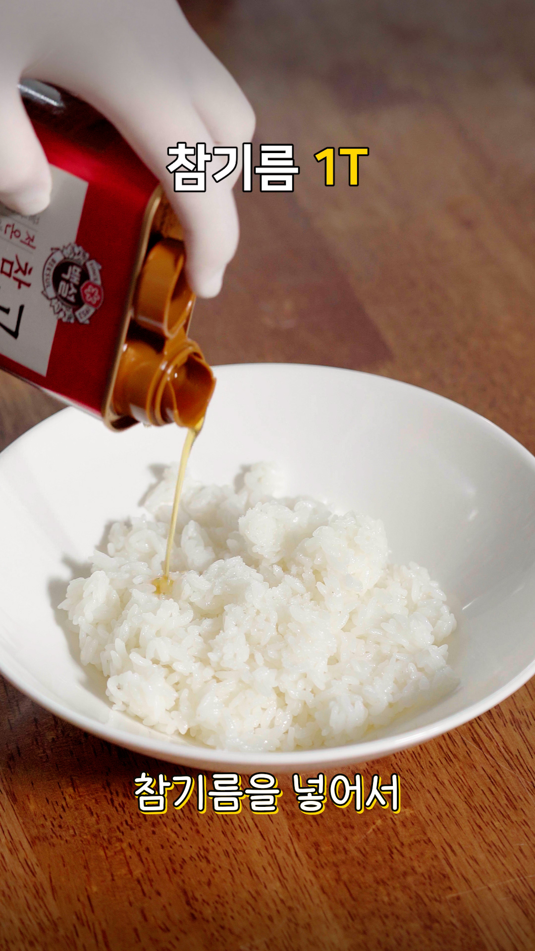 1. 밥에 소금, 참기름 넣어 밑간을 해주세요.