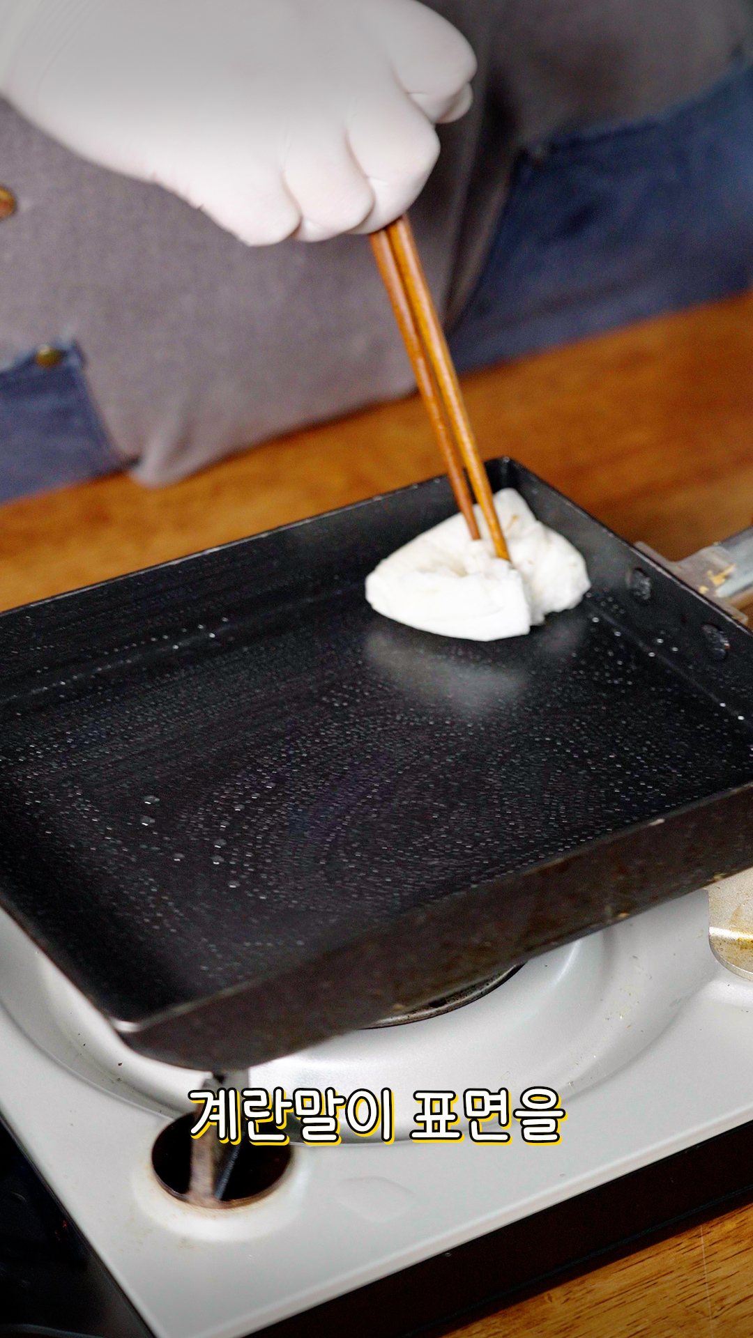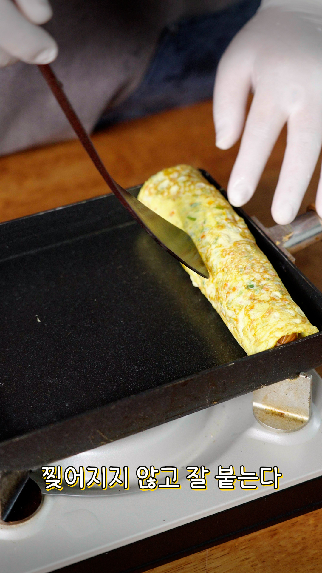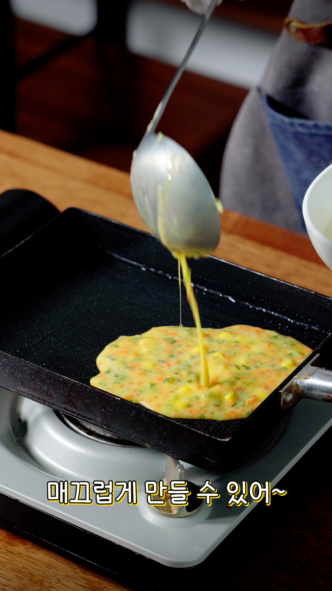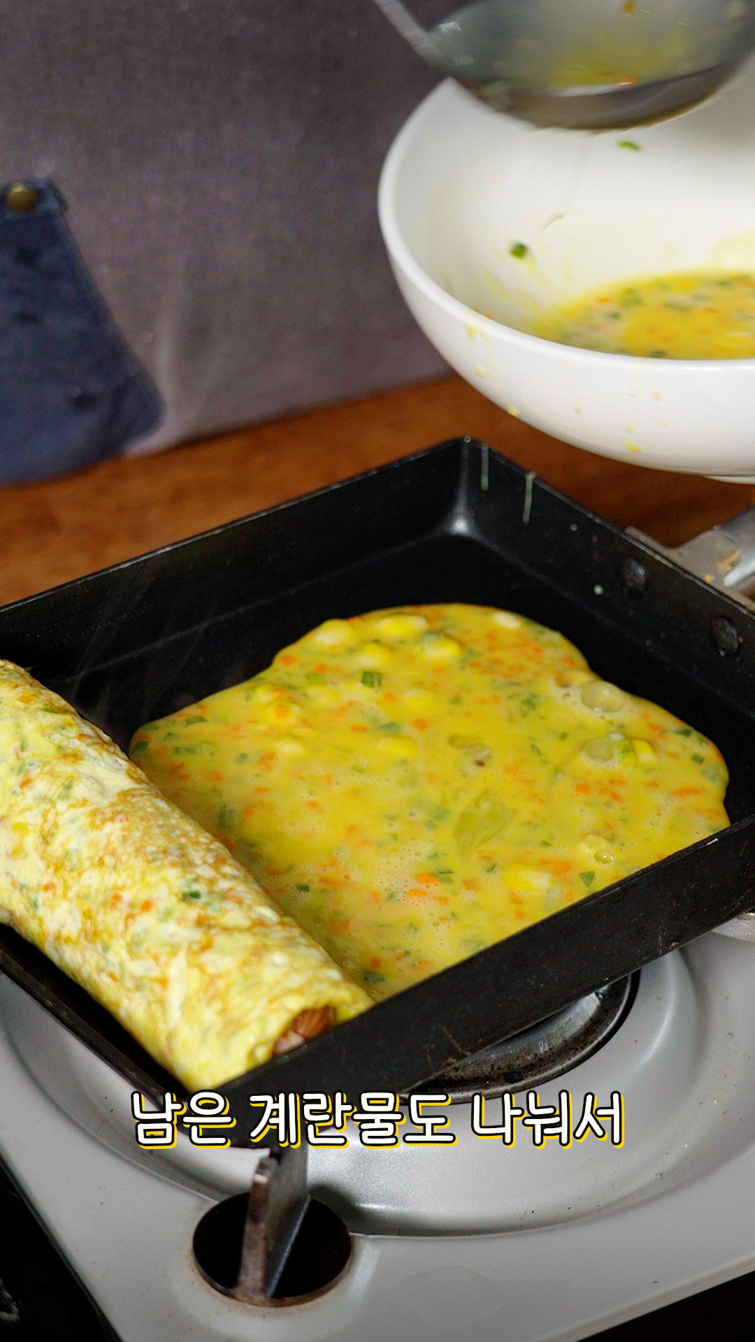4. 남은 계란물 넣어 돌돌 말아 주세요.