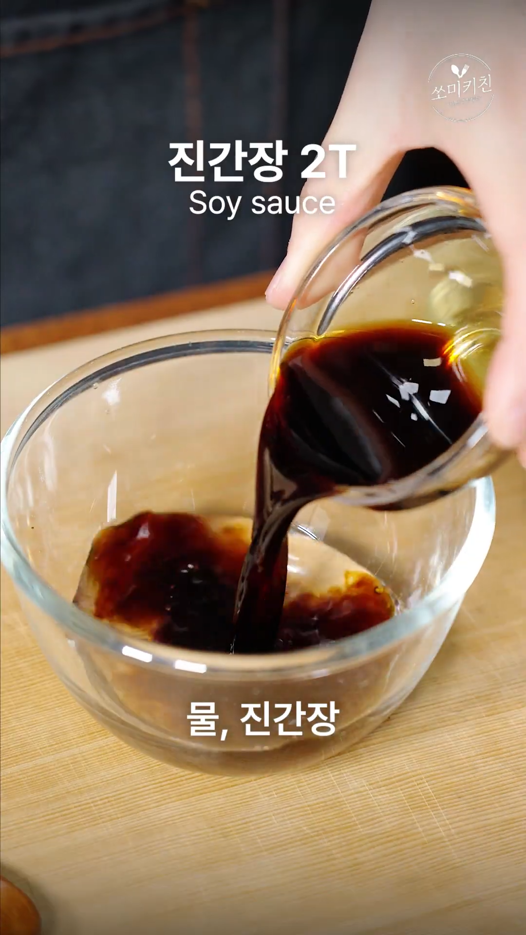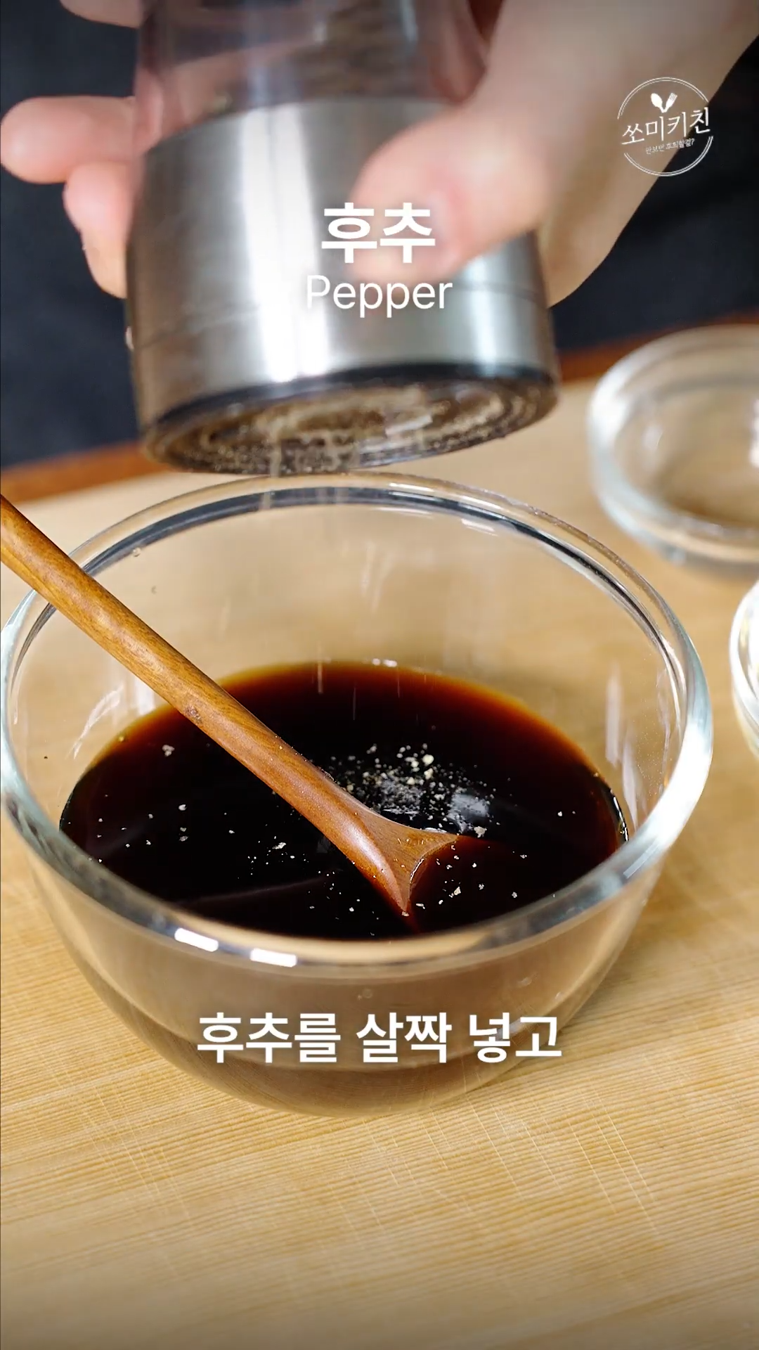 2. 물, 진간장, 맛술, 물엿, 후추를 살짝 넣고 양념을 만들어주세요.