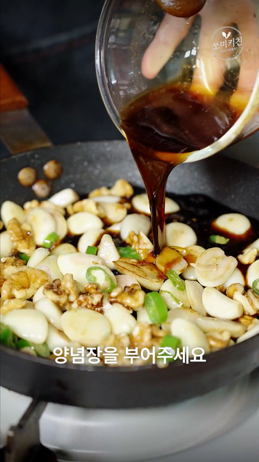 4. 마늘이 노릇해지면 양념을 넣고 졸여주세요 이때 노두유를 넣으면 색이 좀 더 진해져요