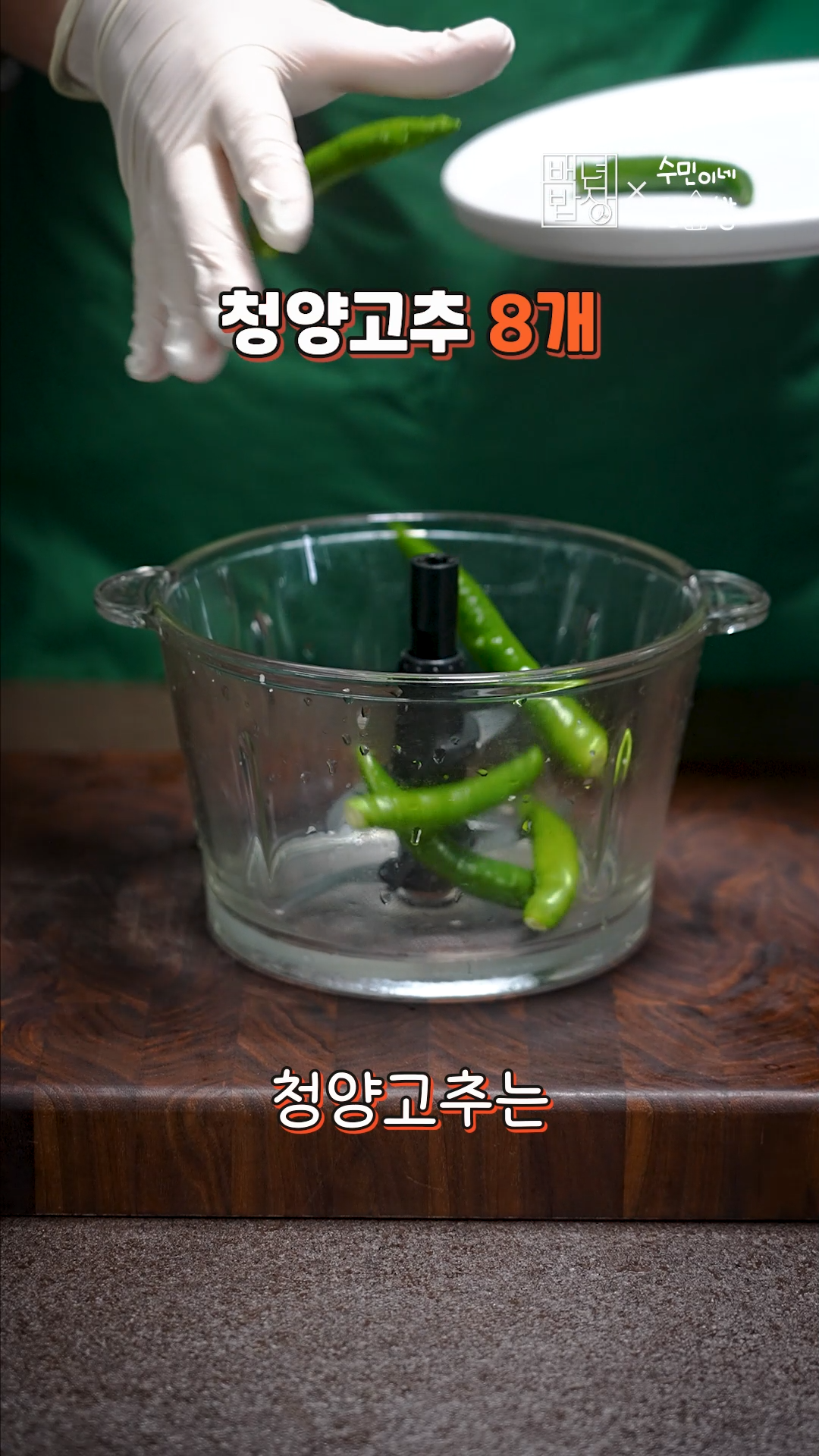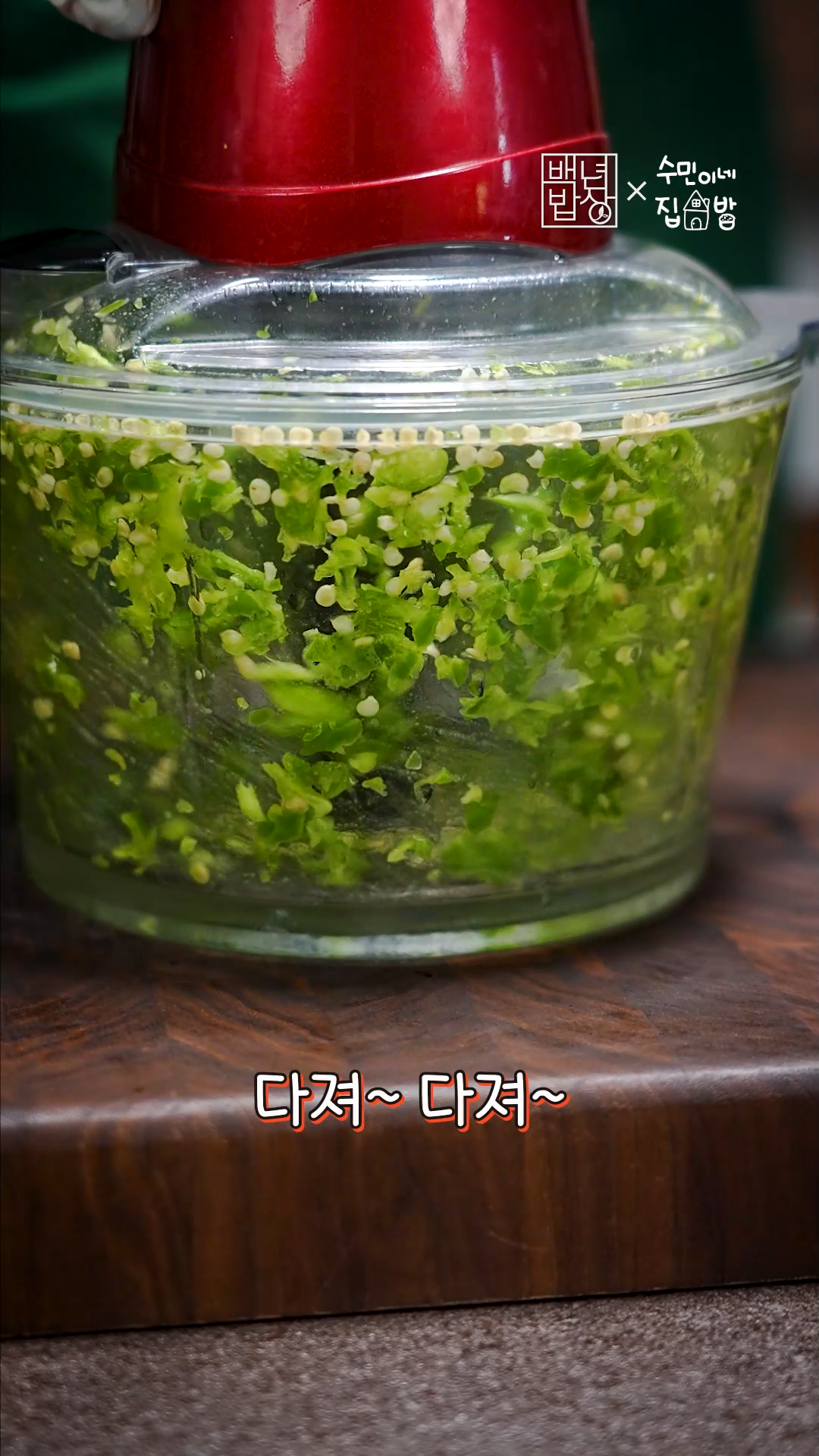 1. 청양고추는 다짐기에 넣어 다져주세요.