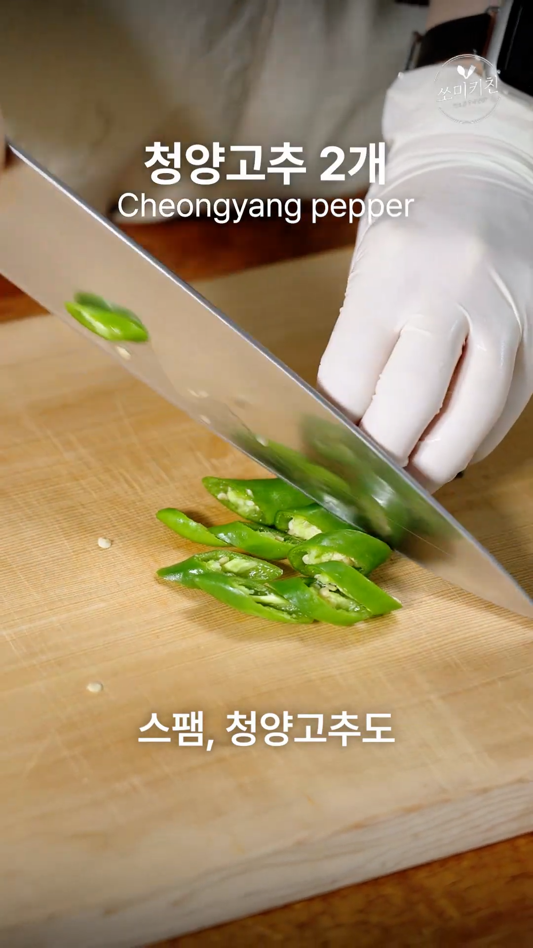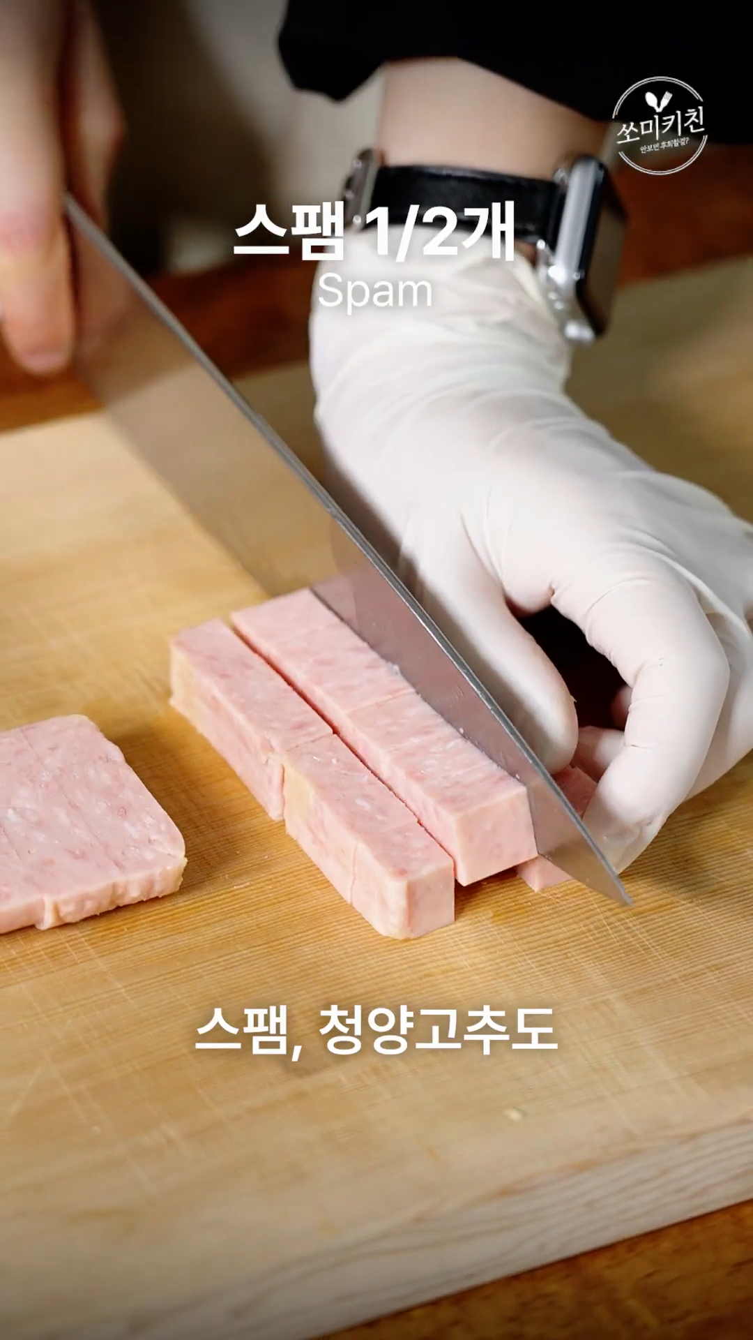 4. 그 동안 양파,스팸,청양고추를 썰어주세요.