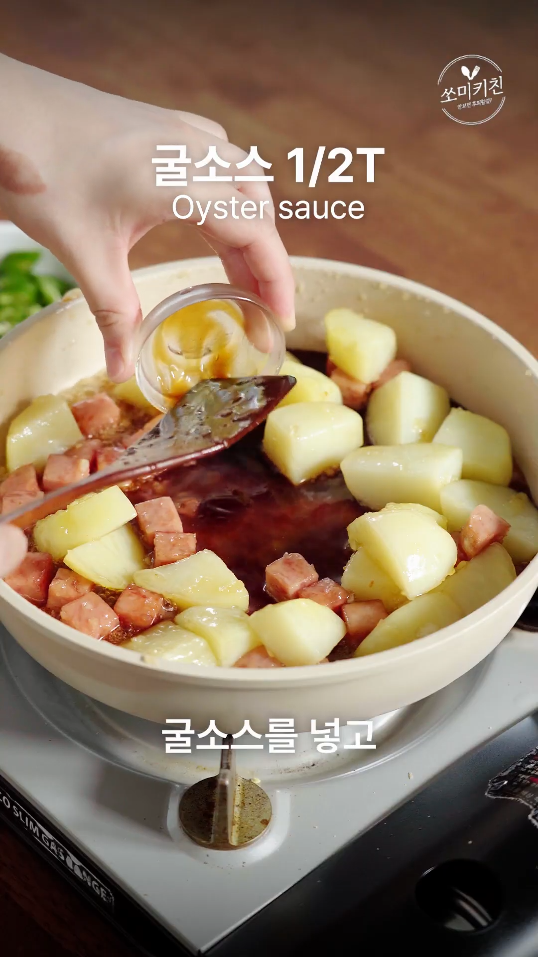 6. 감자가 투명해지면 진간장,맛술,굴소스를 넣고 저어 졸여주면 완성!