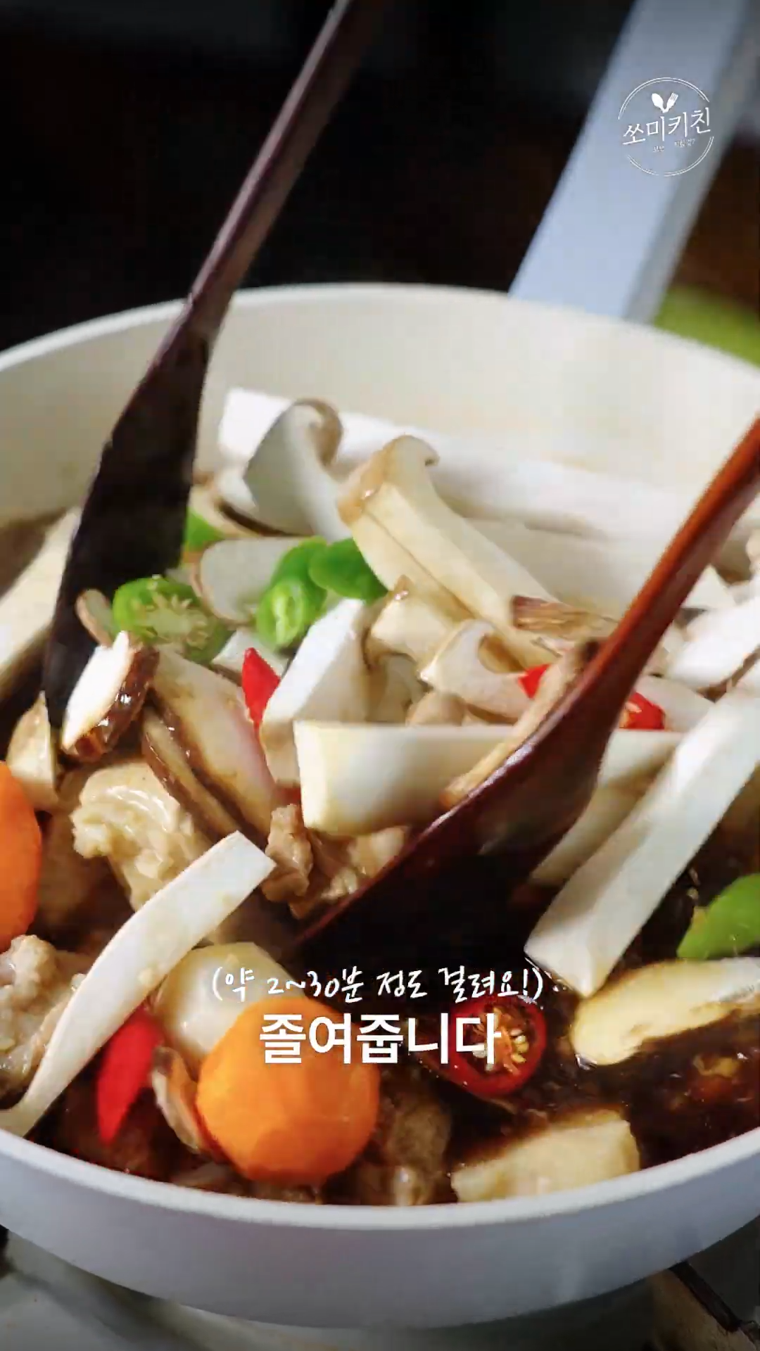 4. 삶는 동안 표고,당근,새송이,무,청.홍고추를 손질해주세요.
