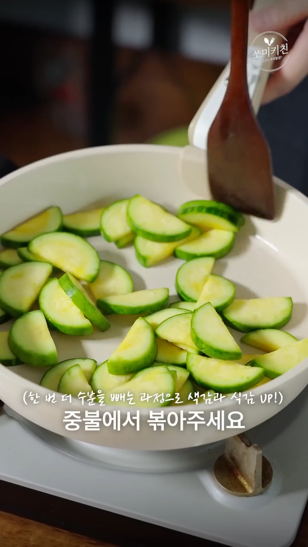 3. 절인 애호박을 헹궈 물기 제거 후 마른팬에 중불로 볶아주세요.
