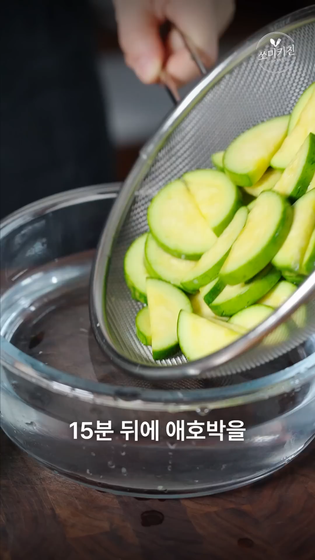 1. 애호박은 반달 모양으로 썰어 소금에 20분간 절여주세요.