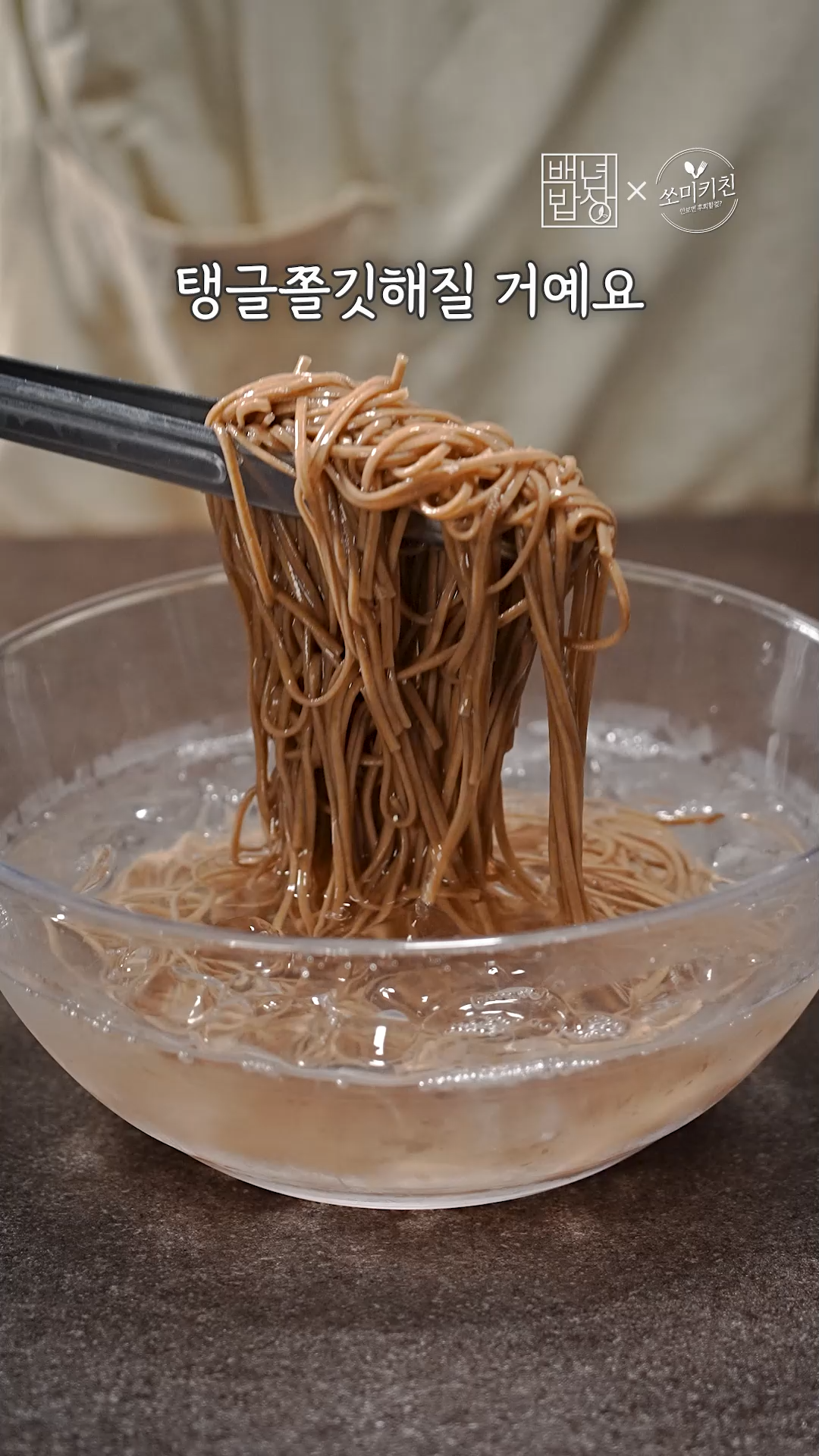 3. 끓는 물에 메밀면 넣어 익혀준 다음 얼음물에 찬물 샤워를 해줄게요.