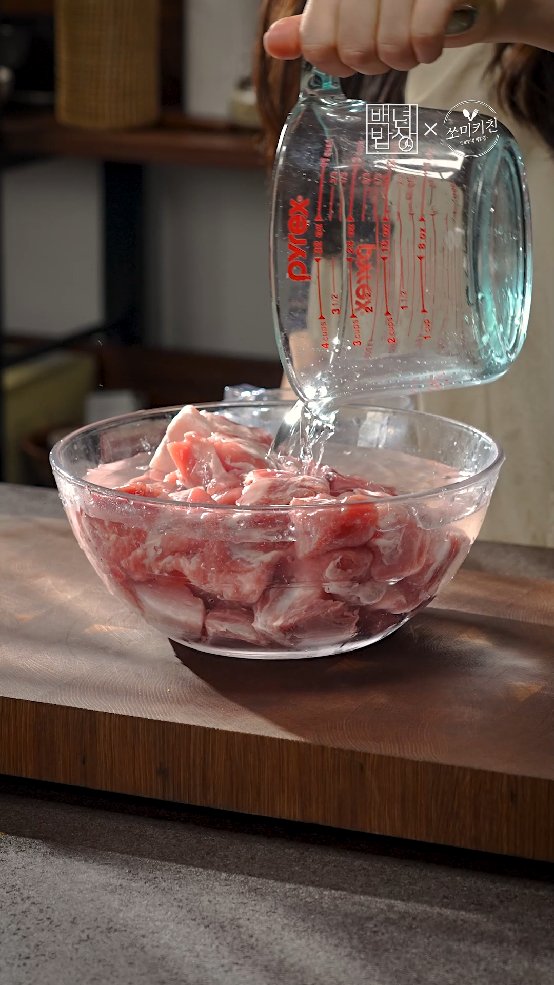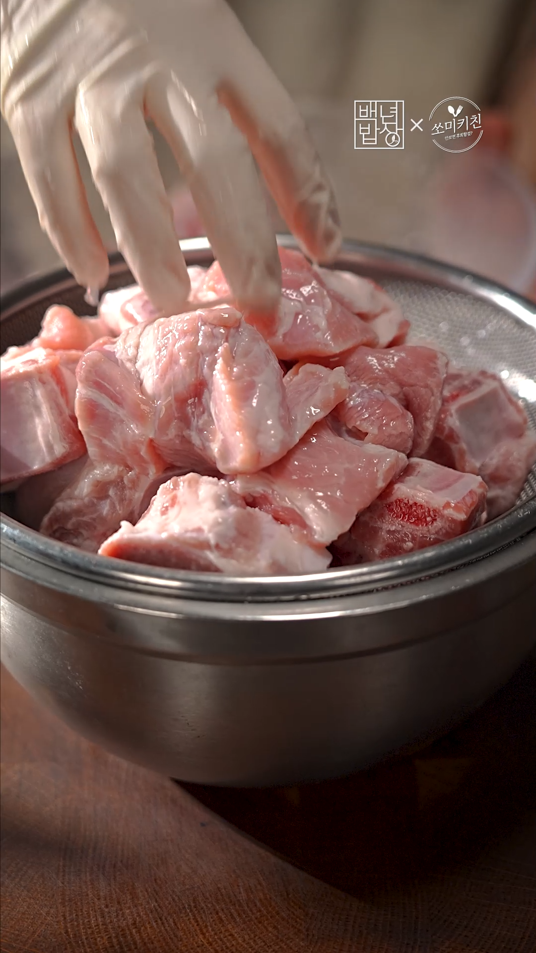 1. 돼지갈비는 2-3번 깨끗이 세척해 채반에 받쳐둘게요.