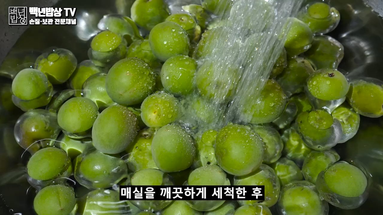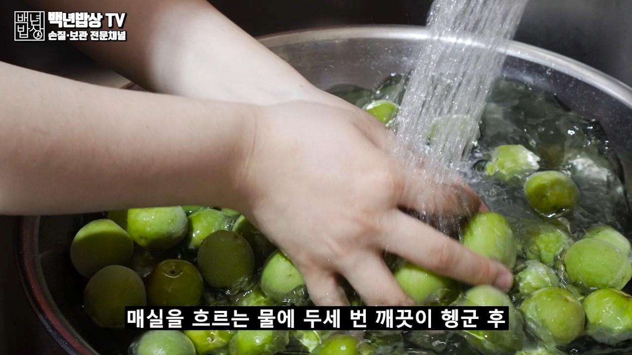 매실을 흐르는 물에 두 세번 깨끗이 헹군 후 식초물에 담가 30분간 담궈 세정 시켜 줍니다. 물에 한 번 더 헹군 후 바람이 잘 통하는 곳에서 물기를 완전히 제거해 주세요. (물기가 있으면 과육이 쉽게 무르고 곰팡이가 생길 수 있어요.)