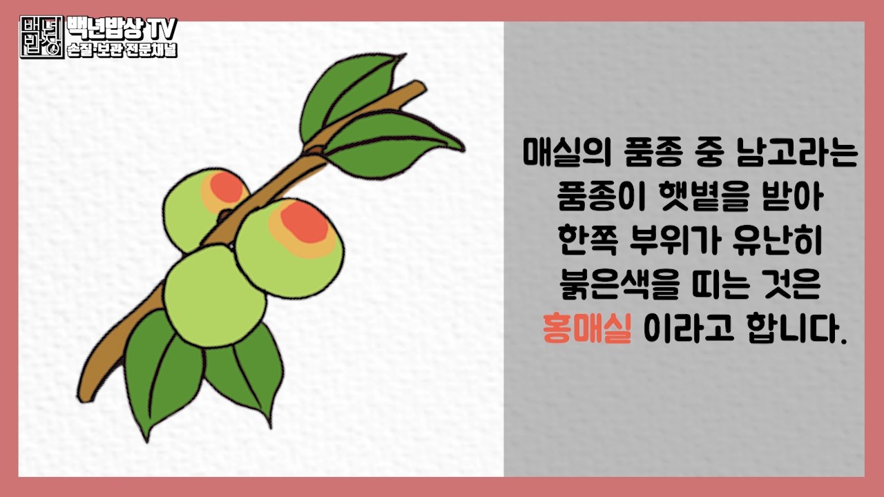 보통 주변에서 흔히 접할 수 있는 매실은 과육이 단단하고 초록색을 띠는 청매실, 과육이 노란색을 띠는 황매실이 있는데요. 이 매실을 색에 따라 품종이 달라진다고 알고 계시는 분들이 많더라고요.