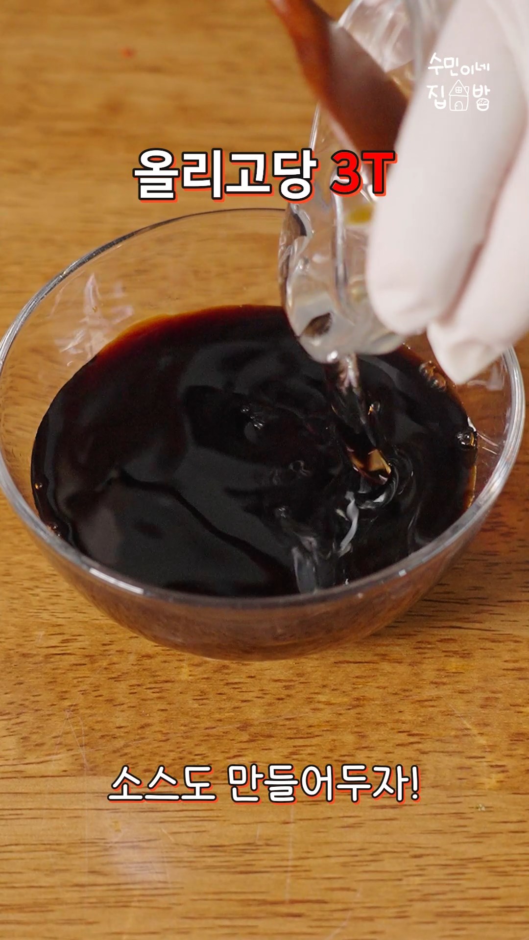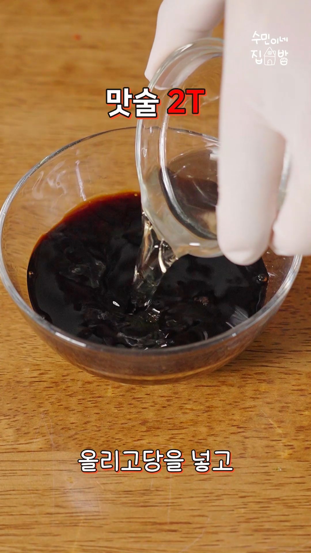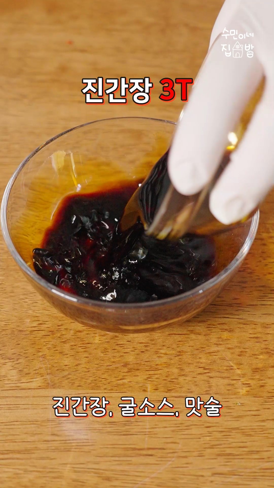 4. 진간장,굴소스,맛술,올리고당을 넣고 소스를 만들어주세요.